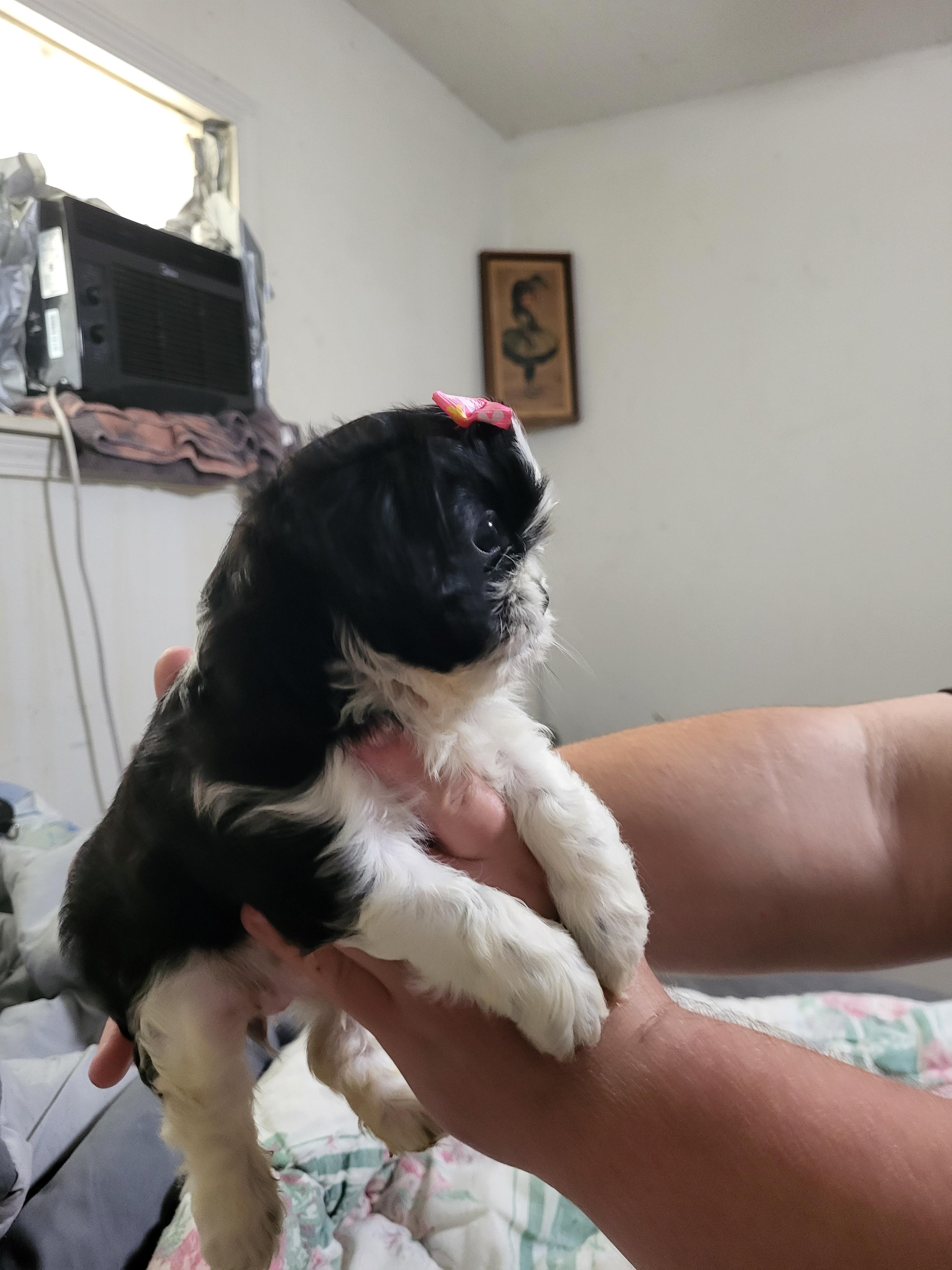 Shih Tzu puppies include black, black gold and silver, silver and white, and black and white. Colors will vary depending on the parent dogs.