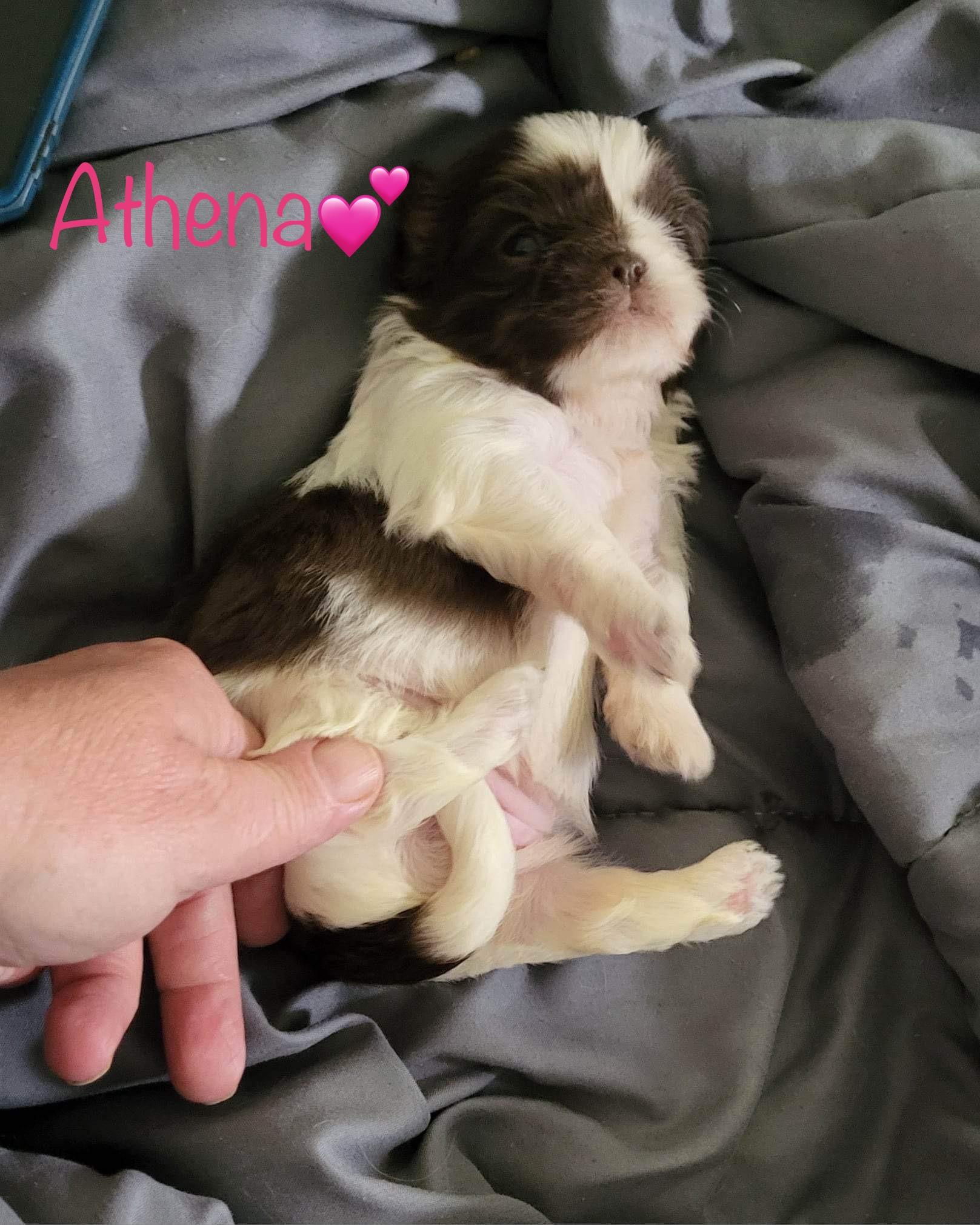 Valentina is a female Shih Tzu. Carefully selected as a great representative of her breed, Gina decided to make her part of their program. Gina has passed Good Dog’s screening process, which involved a review of their breeding practices, environment, and the mental and physical health of their dogs.