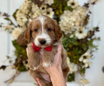 I'm JoNette M., the breeder behind Ginger Paws Doodles located in California. Our commitment to excellence starts with health testing, early sensory stimulation & daily hands-on puppy curriculum to build confidence. Our pups are raised in our home surrounded by love, not kennels. We are committed to responsible breeding and finding the perfect homes for our puppies.