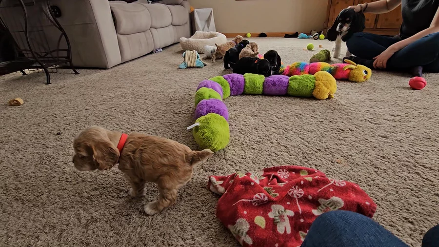 We are so fortunate to have found Karen and her amazing cocker puppies. Working with her was fantastic and you can tell she really cares about her puppies! She shares lots of updates along the way and we 100% felt we were going to get an amazing dog, and we absolutely did! Our little guy is super sweet, smart and came practically potty trained! I would recommend Karen and her puppies to anyone:)