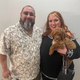We had such an amazing experience working with Angie at Gingerdoodles! From the moment we sent the first message, she responded right away—even though it was late on a Friday night. Angie worked closely with us throughout the process, making it an easy decision to add Little Miss Whiskey to our family. She kept in contact until Gotcha Day and has continued to answer any questions we’ve had even a week later. When we picked up Whiskey, we received a beautifully organized folder with all the essential to-dos and detailed records meticulously kept from birth to the day we brought her home. (Let me tell you how incredible this turned out to be!) We even got to meet Jax and Ginger—two of the cutest, friendliest dogs! Whiskey has been the sweetest addition to our family. She came home already knowing how to sit and, from her very first night, slept in her crate without a peep. The next morning, she went right outside to potty like a pro. Angie and Ben were so knowledgeable and an absolute pleasure to work with. One final thing that deserves mention: when we took Whiskey for her first vet check-up, our vet commented that he had never seen such thorough and well-organized records from a breeder in all his years of practice (yes, the folder was that impressive)! Thank you, Gingerdoodles! We’ll be recommending you to anyone looking for a Golden Doodle.