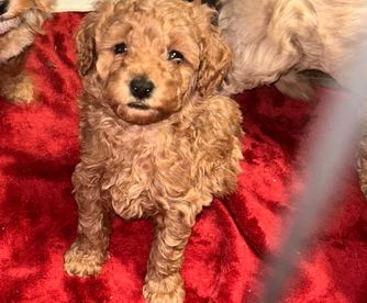 Our puppies include apricot and red. Colors will vary depending on the parent dogs.