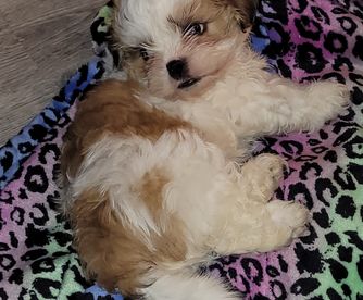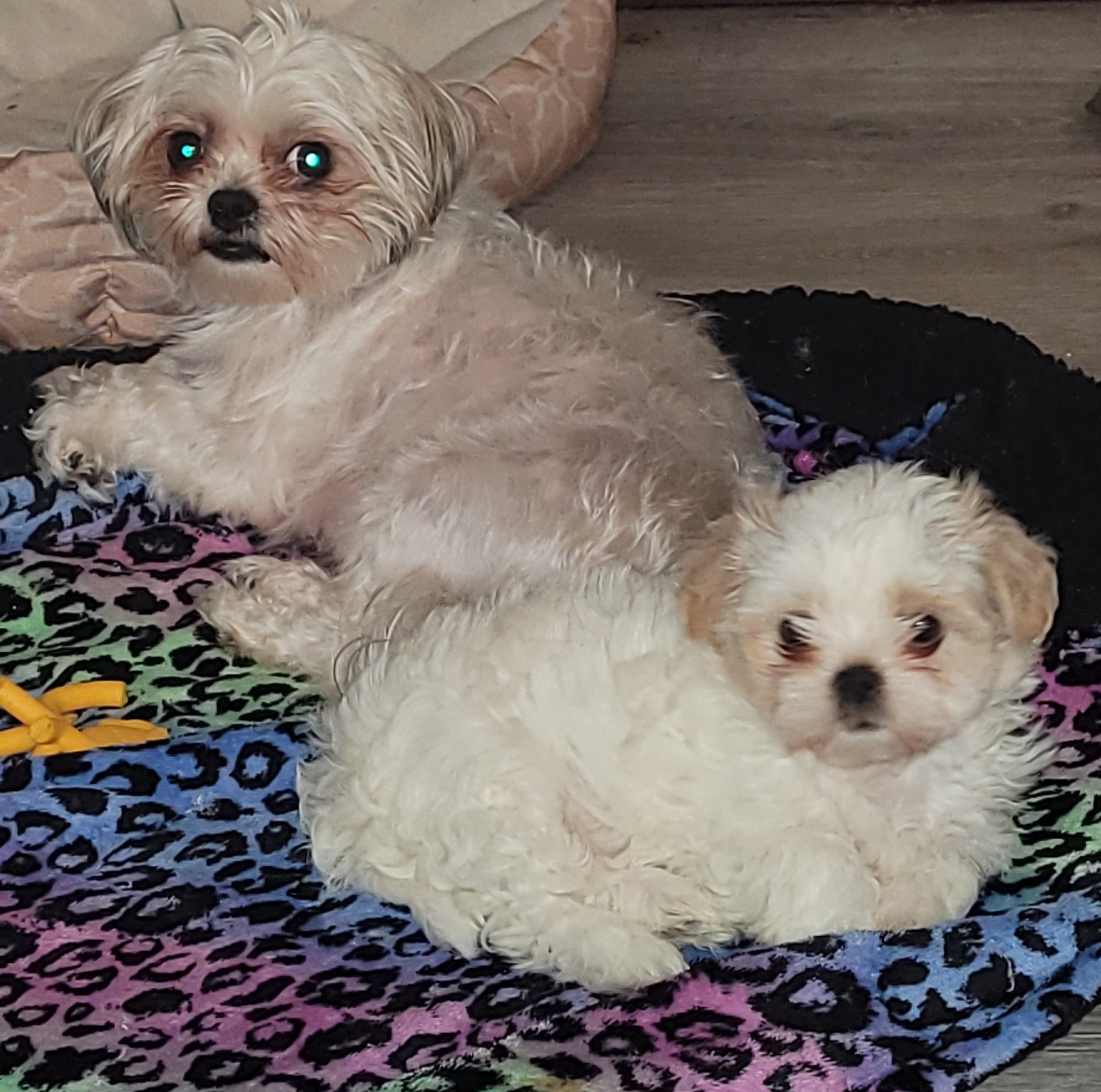 my sister has been breeding dogs for awhile, we had a little gold and white female shihtzu Addison. She is the sweetest most loving lil girl. We ended up buying a small black reddish brown and white male from my