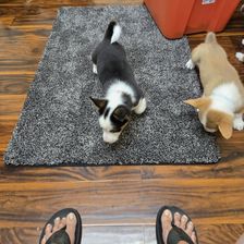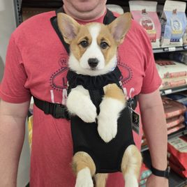 Freyja is sweet, spunky, loyal and loving. Not yet 1 year old, she is still in the Tyrannosaurus/Corgi stage! Chewing on anything we might have left on the floor! Typical puppy. We love her.