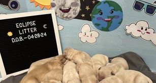 We ARE NOT a kennel. We are hands on, in home breeders. From the second they are born, our puppies are handled and loved! Some call this ENS. Our dogs are our pets first and foremost. They live in our home and are part of our family. We have had outstanding feedback from our pups that have gone for therapy dogs, as well as the pups that are a family pet. Very well socialized & gentle natured.