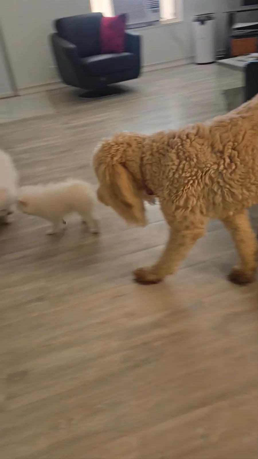 Hoss and Little Joe play with Roxie the Golden Doodle