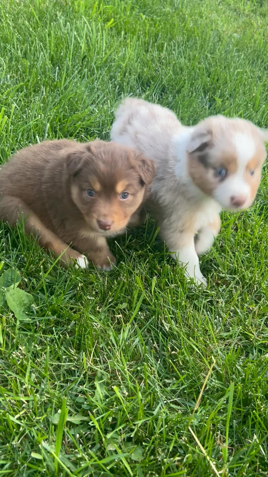 Our puppies include red merle, blue merle, black tri-color, and red tri-color. Colors will vary depending on the parent dogs.