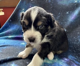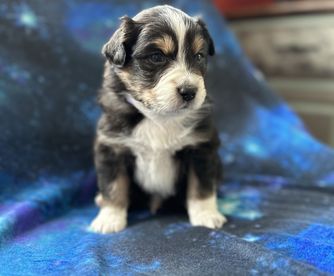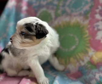 I'm Angela B., the breeder behind Glacier Big Sky Aussies located in Dousman, WI. I am a small animal veterinarian, and have picked two dogs who are excellent examples of their breed. We are focused on personality and confirmation. Mom has high scores in herding instinct testing, and they are our pampered pets as well. Our pups will only go to responsible owners, who are ready to meet the needs of this happy, high energy breed.