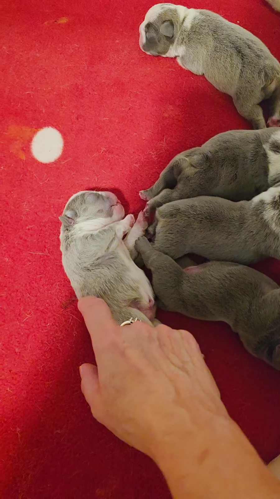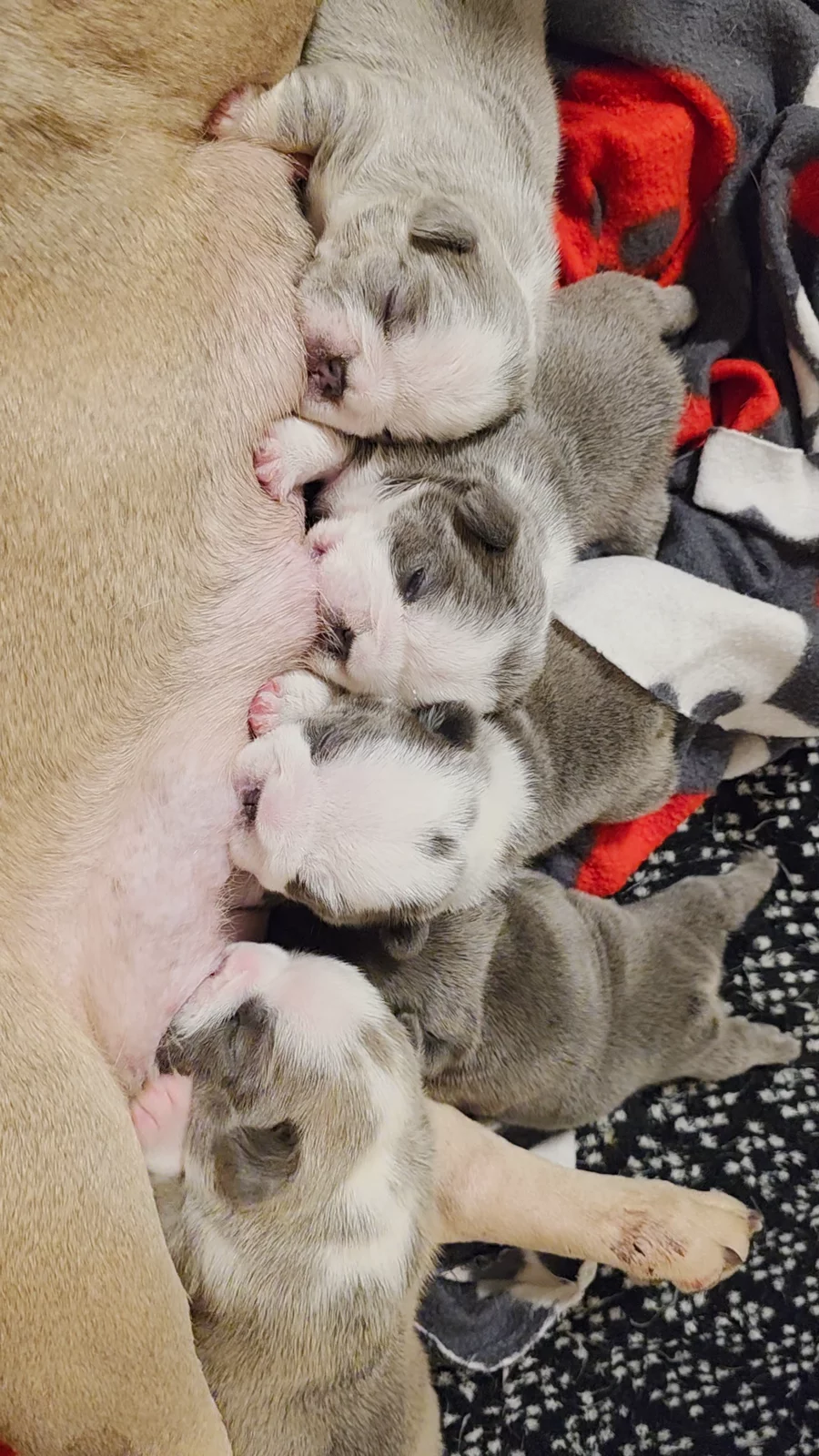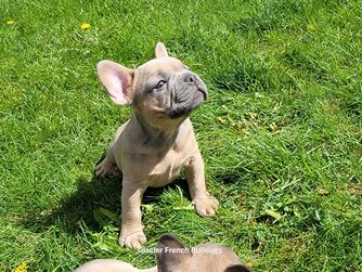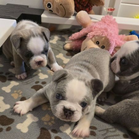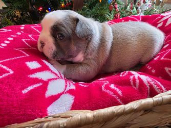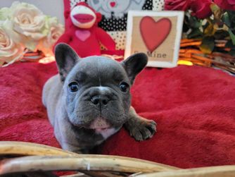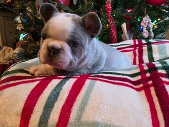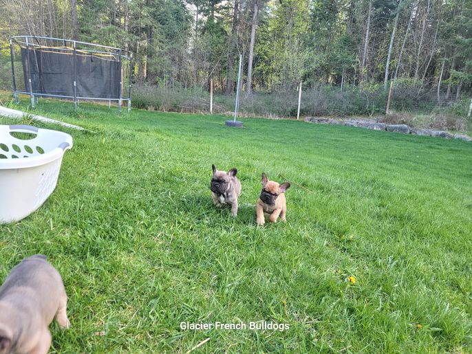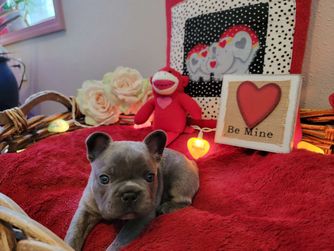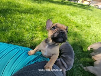 I'm Rubianna M., the breeder behind Glacier French Bulldogs of Montana located in Columbia Falls, MT. Our AKC Frenchies are part of our family and thoroughly spoiled as all French Bulldogs deserve. Puppy parents have DNA health clearances and are four-panel clear to avoid genetic health issues. Our babies are raised right in our living room with love and care and routinely checked by our vet. Our puppies are well-socialized and exposed to cats, other dogs, people, loud sounds, and a busy household. Puppies come with first vaccinations and a one-year health guarantee. We have two girls and three boys born on December 29, 2023. Puppies will be ready for their new homes on February 23, 2024. The litter is blue and lilac and growing and changing every day. We are happy to answer questions, provide more pictures, and send videos. Shipping or transportation is available for additional fees.