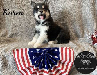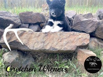 I'm Michaela R., the breeder behind Glacier Malamutes located in Kalispell, MT. We are a veteran owned, small time Alaskan Malamute breeder. We breed for intelligence and temperament and are passionate about preserving the best qualities in our puppies. All adults in our program are OFA hip/elbow certified and Embark tested. Our malamutes are part of our family. Puppies are born in home and handled/loved on daily.