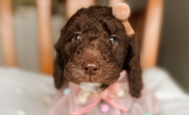 Winnie is a female Goldendoodle. Carefully selected as a great representative of her breed, Taylor decided to make her part of their program. Taylor has passed Good Dog’s screening process, which involved a review of their breeding practices, environment, and the mental and physical health of their dogs.