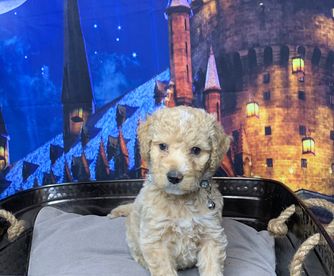 Our puppies include cream, apricot, and parti. Colors will vary depending on the parent dogs.