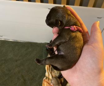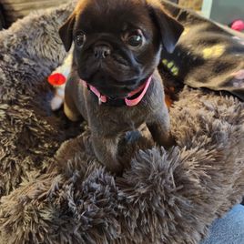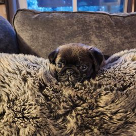 Esme is a female Pug. Carefully selected as a great representative of her breed, Lisa decided to make her part of their program. Lisa has passed Good Dog’s screening process, which involved a review of their breeding practices, environment, and the mental and physical health of their dogs.