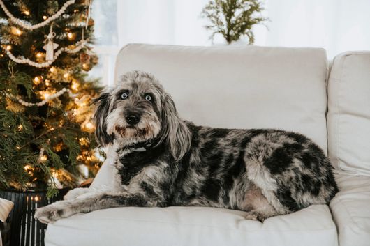 Korra is blue merle F1 Aussiedoodle out of Spook and Cooper. Korra has two blue eyes.