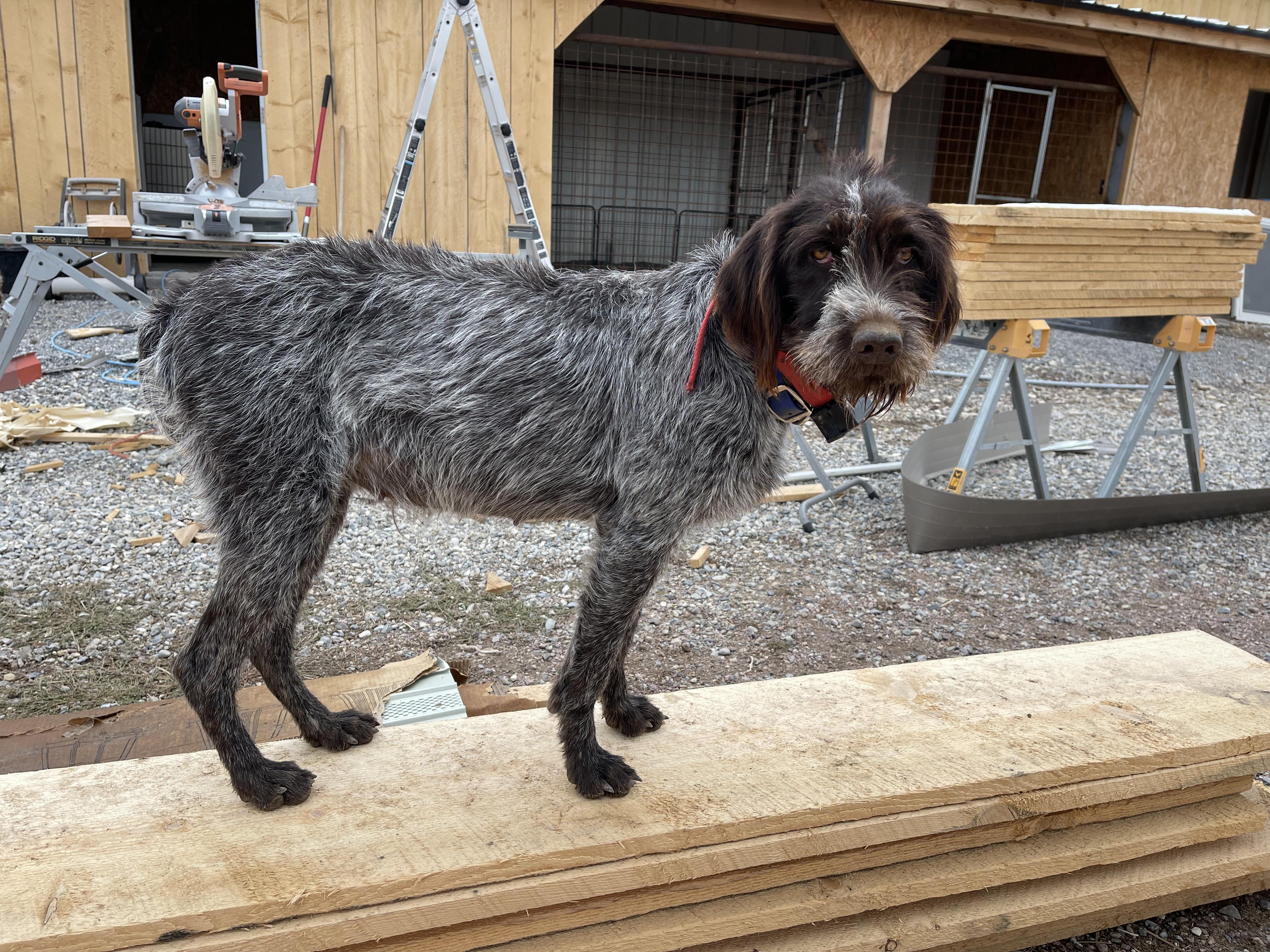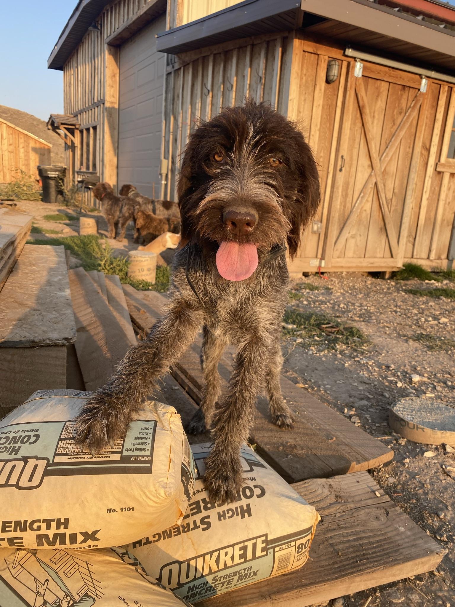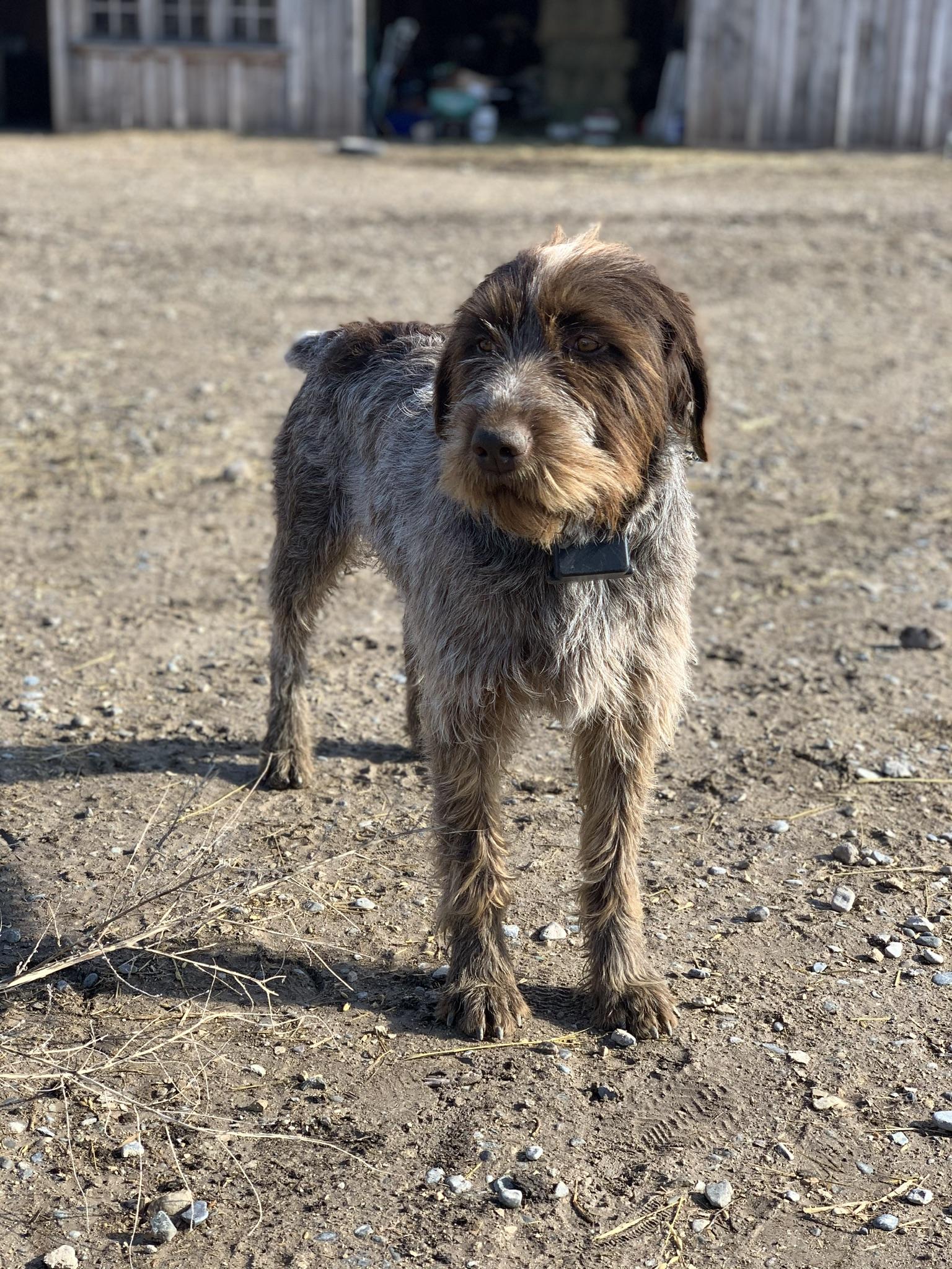 June is a female Wirehaired Pointing Griffon. Carefully selected as a great representative of her breed, Amanda decided to make her part of their program. Amanda has passed Good Dog’s screening process, which involved a review of their breeding practices, environment, and the mental and physical health of their dogs.