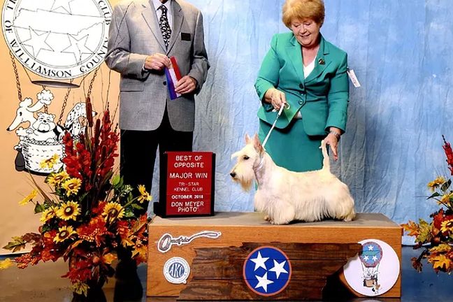 We fell in love with Scotties and found a great breeder who was willing to let us have a beautiful show girl. She was my first Champion. We have built on that for 20 years and have many, many champions now. Breeding for the betterment of the breed is a joy. Each new litter is a gift and one we do not take for granted. Now, we are focusing on the longevity of the breed.