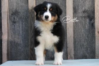 Australian Shepherd puppies include black, red merle, blue merle, and red. Colors will vary depending on the parent dogs.