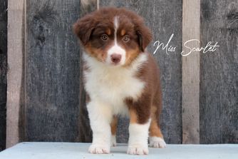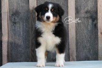 Our Australian Shepherd puppies include black, red merle, blue merle, and red. Colors will vary depending on the parent dogs.