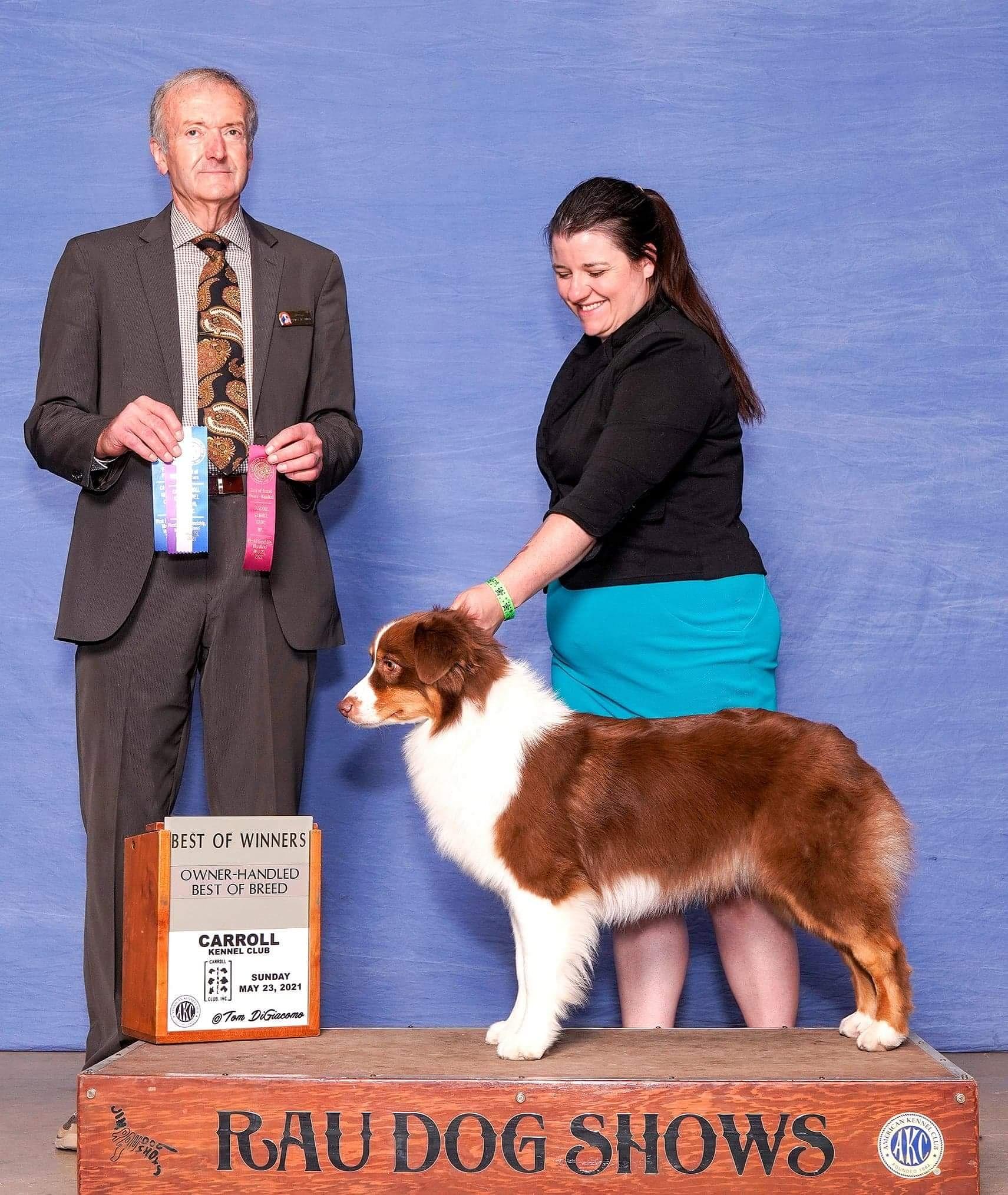 Whistler is a male Australian Shepherd. Carefully selected as a great representative of his breed, Veronica decided to make him part of their program. Veronica has passed Good Dog’s screening process, which involved a review of their breeding practices, environment, and the mental and physical health of their dogs.