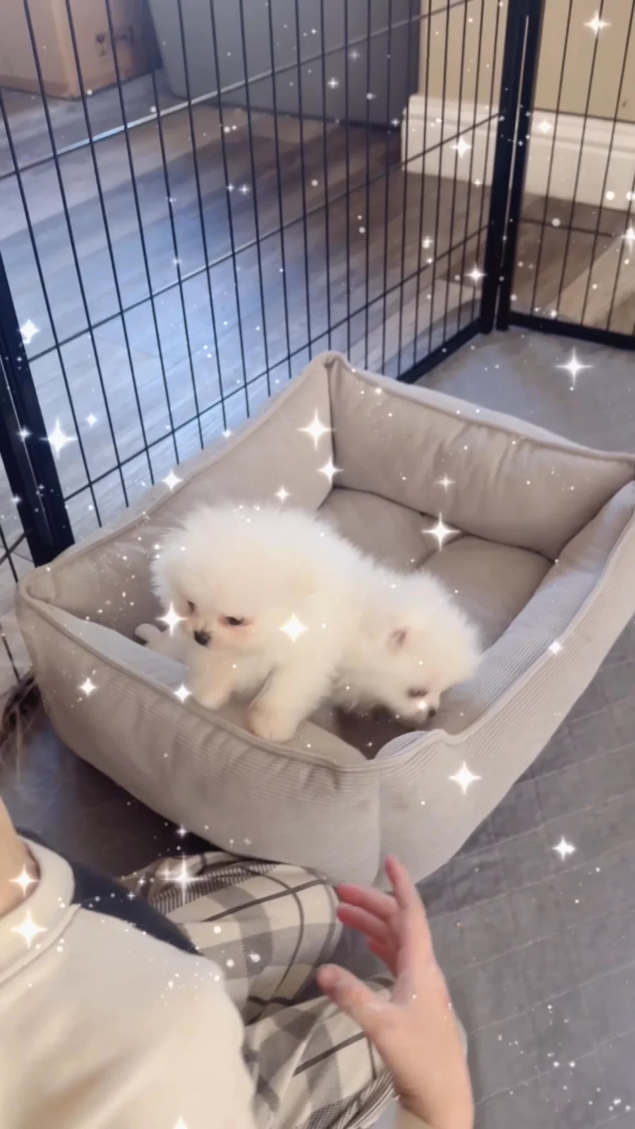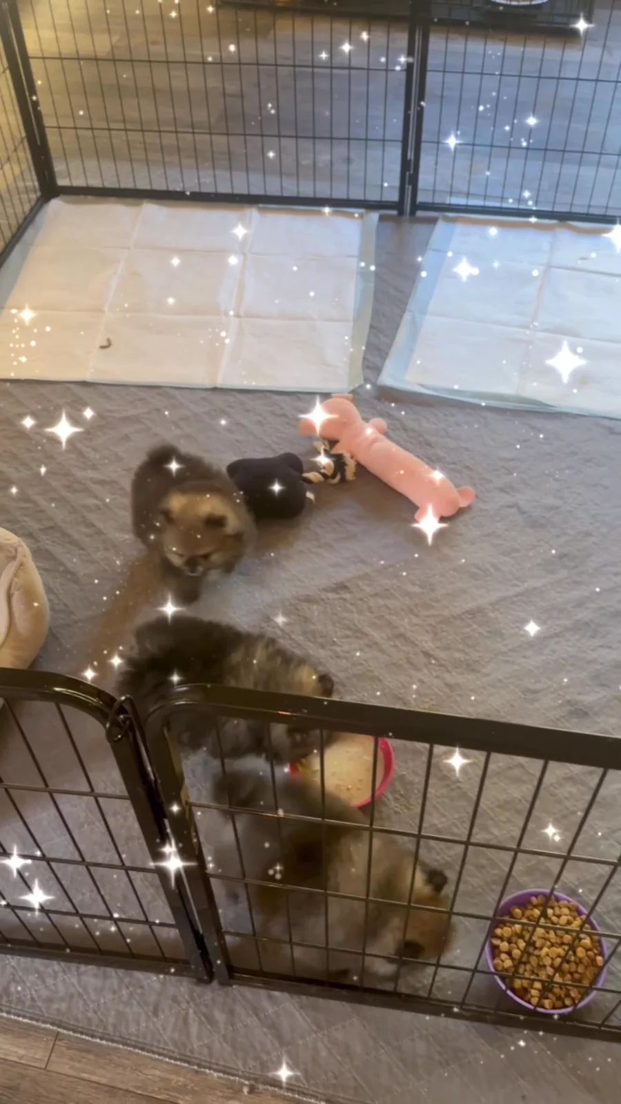 We had a kennel inspection so my Poms had to be in the small pins but usually they are in our home, playing in their yard or sleeping with my daughters!