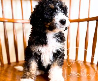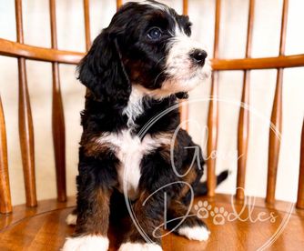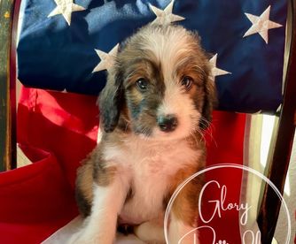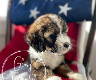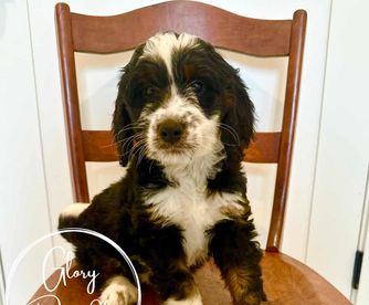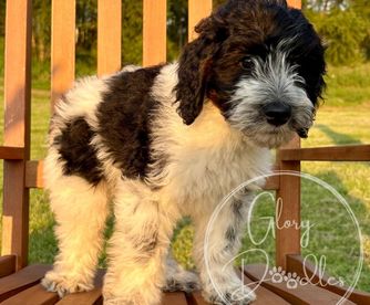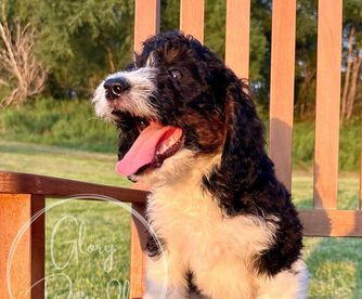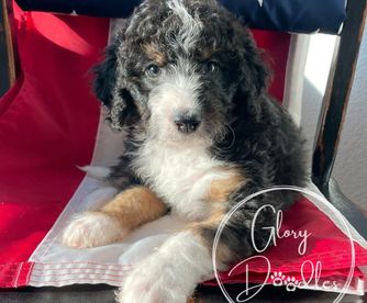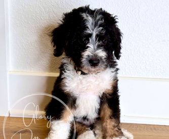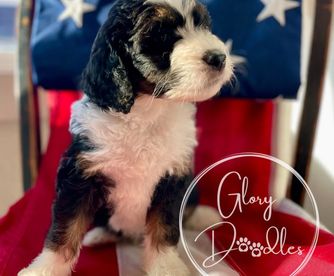 I couldn't be happier with my experience working with Alison and Glory Doodles. From the very beginning, they were easy to communicate with, friendly, professional, and genuinely passionate about their dogs and their program. Alison was amazing, answering all my questions and providing me with plenty of tips and recommendations to help transition my puppy to his new home. Even after getting him home, she responded to all of my questions with patience and care. Choosing to get my Bernedoodle from Glory Doodles was, in my opinion, the best decision I made. Walter has been the best dog. The program used by Glory Doodles sent me home with a puppy that was already crate-trained and was almost fully potty-trained. The personality report I was given to know my puppy better showed he tested high in tender-heartedness, and that is 100% true. He is so loving and gentle - he is a true blessing to our home. He's been easy to train - examples of things he knows: rings a bell to go outside, sit, shake, high five, fist bump, lay down, turn, roll over, tell me (a bark), and say please (a soft bark), and is an absolute joy. I am so grateful to Glory Doodles for taking such pride and care in their puppies to make sure we got a great addition to our family. If I had the room for two, I'd get another one without hesitation!