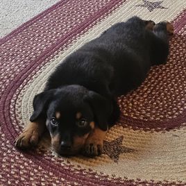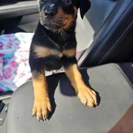 I couldn't be happier with Leonidas (Leo). He is the most chill puppy I've ever had. Leo is my 5th rotti, I've had 3 females and Leo is 2nd male. I got me 1st rotti in 1996 and sense then I've only gone 4 months without a rotti. So I do know the breed very well. I had an uncle that was a k9 for local PD in 70's. I was the #2 that trained with uim for feeding and caring. Didn't get to do bite work but everything else. So i have trained all my rottis in lesh work and comma d as well as hand signals only. Leo will be my best of all i believe. I took him to vet 1 wk after getting him home and he weighed 15.1lbs. Just took him for his 4 wk appointment for heartworm meds and he weighed 30.25 lbs. Unbelievable he doubled in weight in 4wks. He is very intelligent and has all the best instincts rotti's r born with. Couldn't be happier with Mr G!!!! I will try and keep updating all. Thanks again!!!