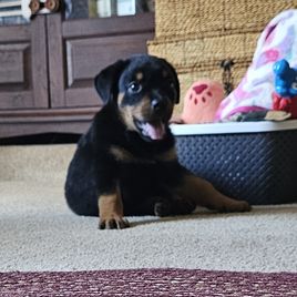I bought Petra in 2022 and she's the best friend a dog can be. Gets along with my siblings dogs and kids. Very food driven and fairly easy to train. Has a little bit of doggy ADHD but that's the breed. Looking at other breeds for my 2nd dog just to mix it up but if i did get another rottie i wouldn't think twice about buying here again.