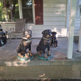 I'm Mr. G M., the breeder behind G.M. Rottweilers/Kennels located in Russell Township, OH. We breed our Rottweilers to AKC/ADRK standards. We focus on making a structurally sound Rottweiler with proper physique and psyche. We are a small in house kennel. Our Rottweilers are from European Champion Import Bloodlines from the "old country" dating back to the early 1900s/ late 1800s. Germany, Russia, United Kingdom and Yugoslavia. Our Rottweilers come from trained protection bloodlines and working service bloodlines. Great temperament, blockheads and muscular with big bone structure. Very rich mahogany coloring. My Rottweiler produce Working class/show class dogs ready to be trained for any service, they also makes a great pet/family dog. Very obedient, and loving breed with great drive, who are easily trainable and willing to work. We love our Rottweilers and pamper them as much as possible! Our Rottweilers are house raised and free range on 2 acres. Feel free to contact us for more details about puppies or stud service. We are committed to always responsibly breeding with the best interest of our puppies’ health and longevity at the forefront. We raise our litters in our home to help set the foundation for happy and confident puppies to transition well into their forever homes. It’s a privilege to have the opportunity to make an impact on each individual puppy! PUPPIES ARE SOLD AS IS NO REFUNDS.