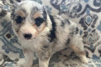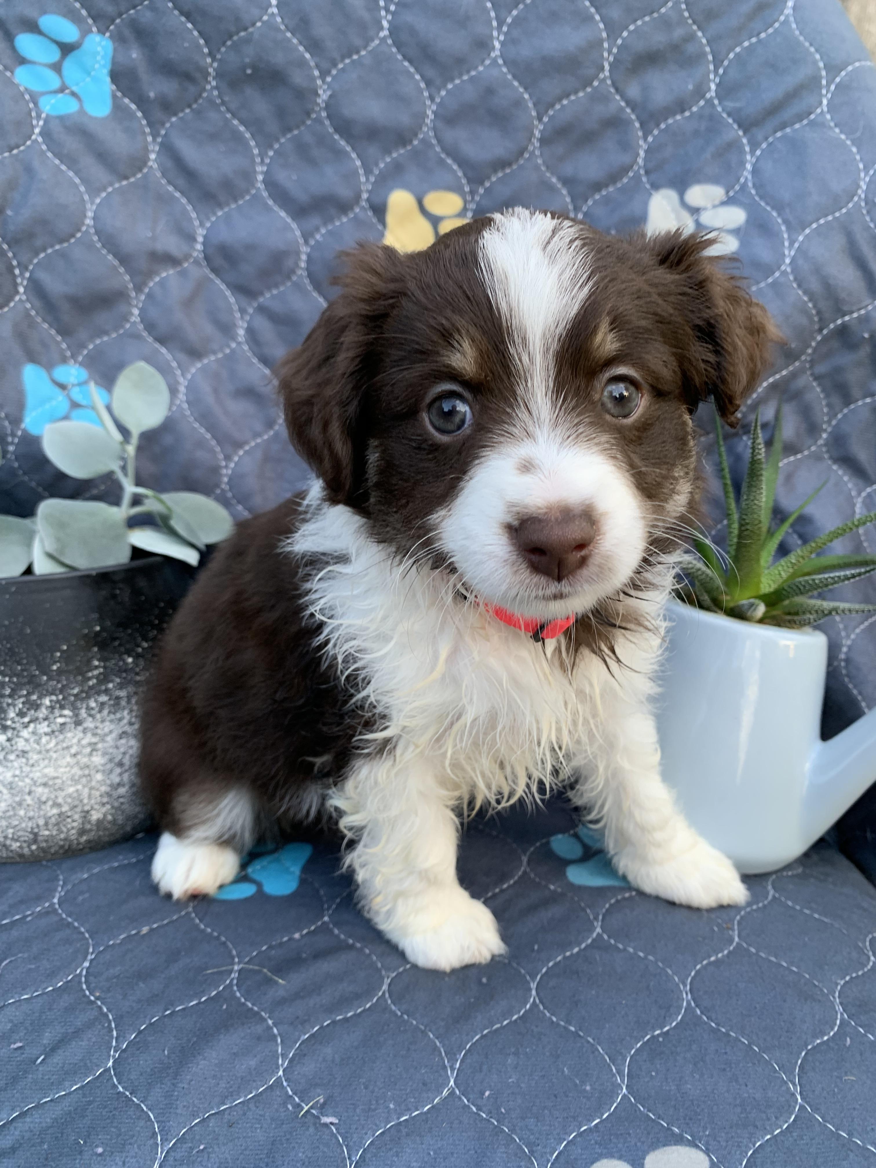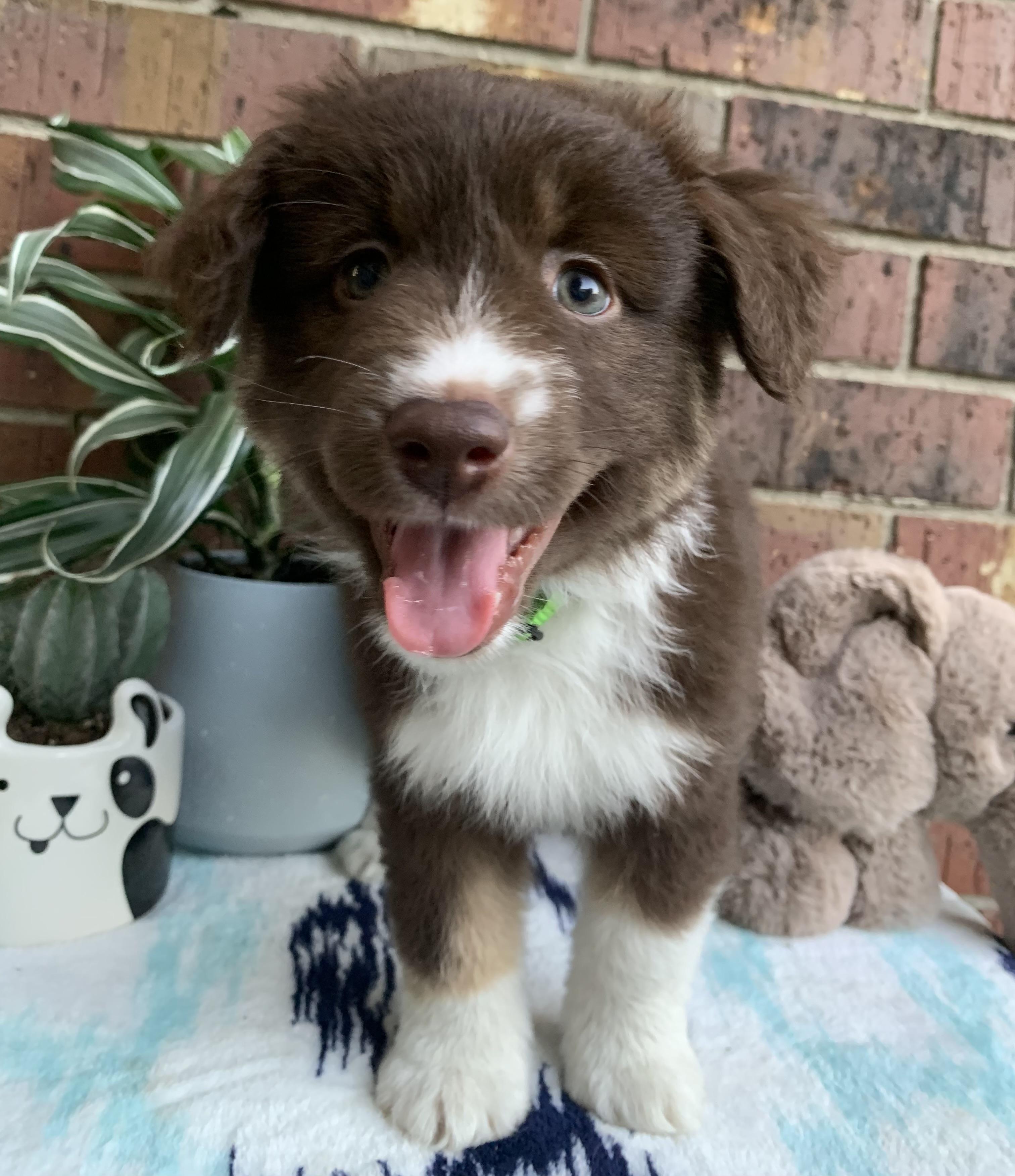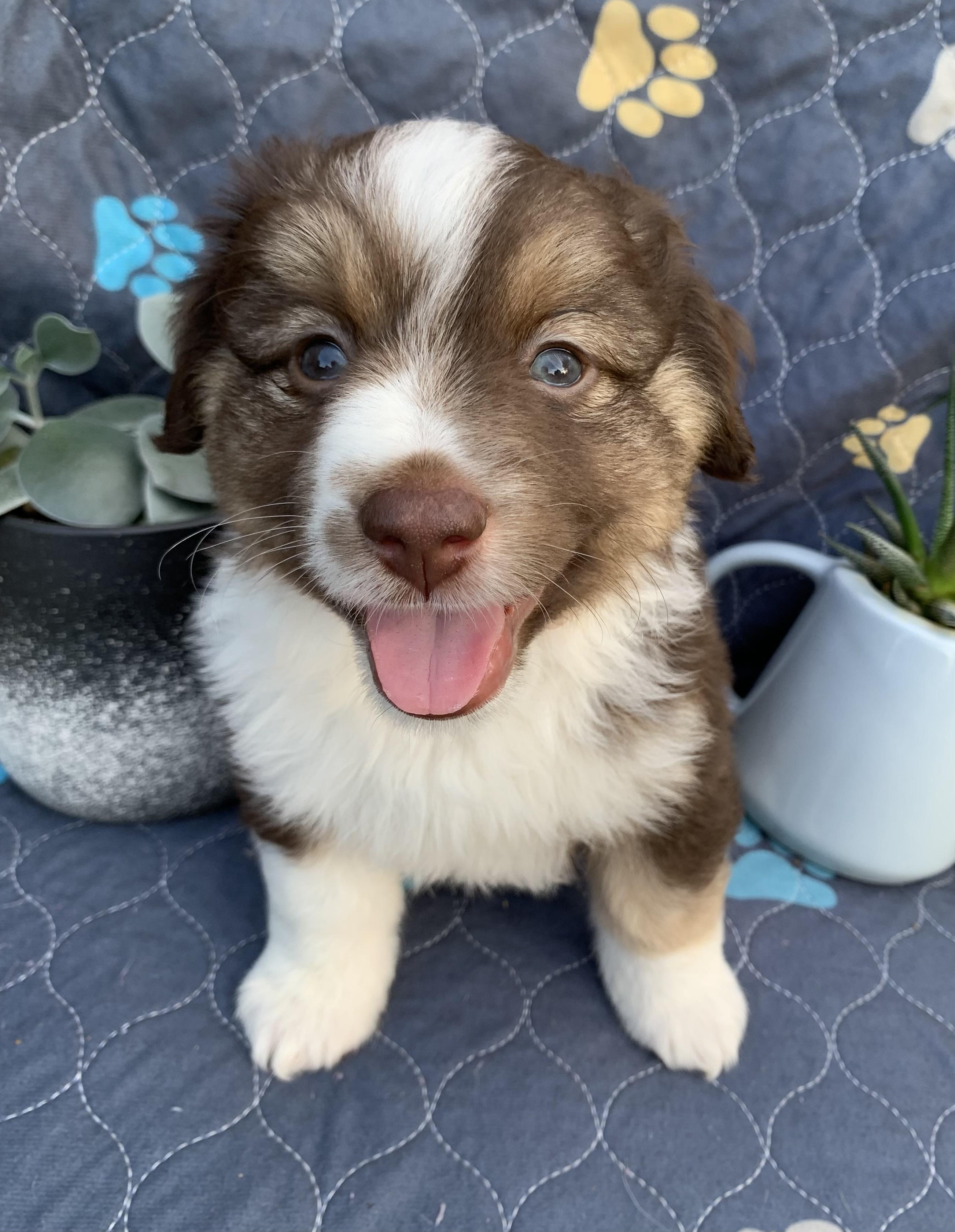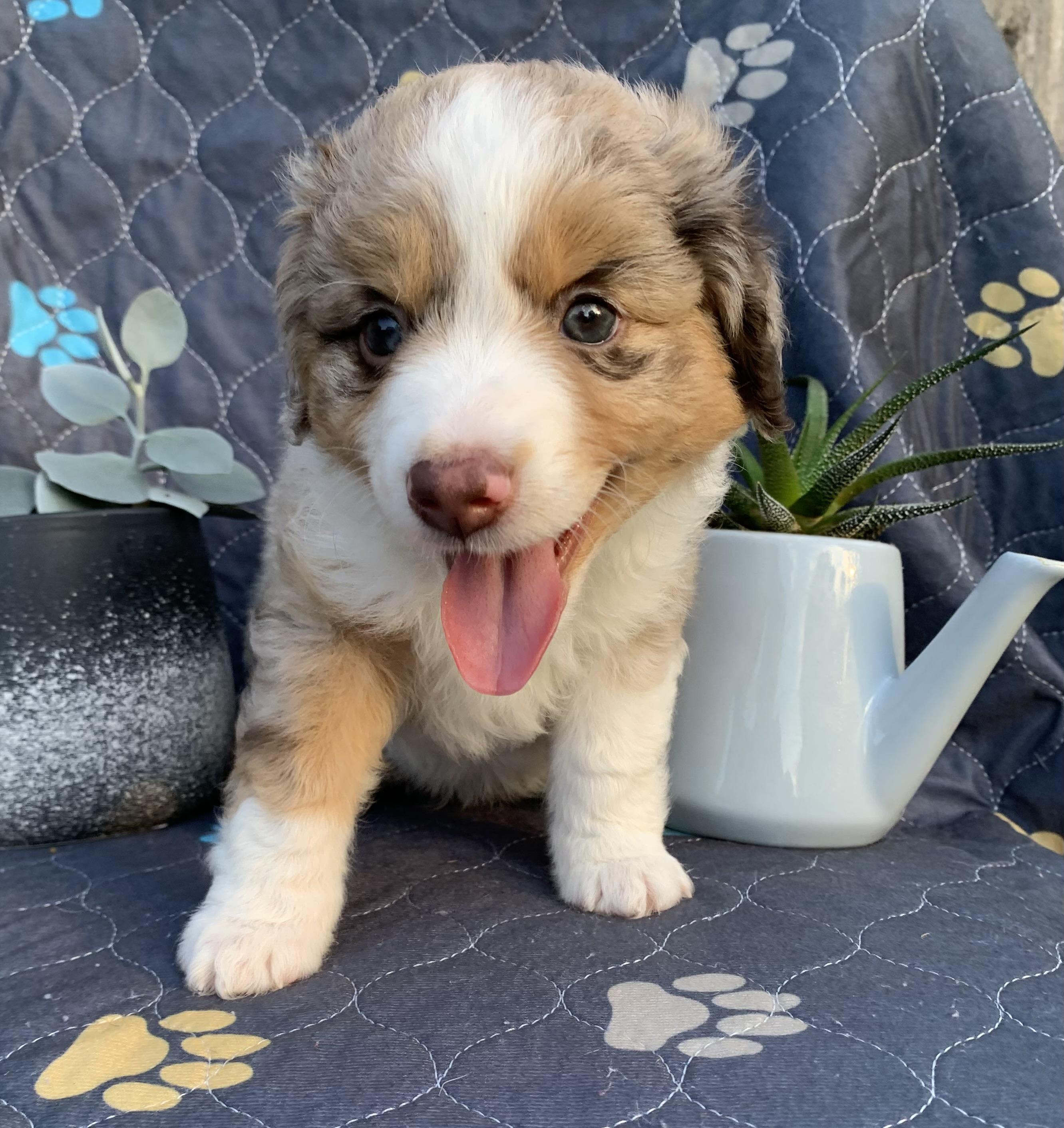 Miniature Australian Shepherd puppies include blue merle, black tri, red tri, and red merle. Toy Australian Shepherd puppies include black tri, blue merle, red merle, and red tri. Colors will vary depending on the parent dogs.