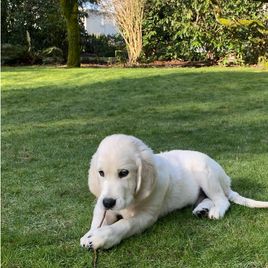 Gibson is a male Golden Retriever. Carefully selected as a great representative of his breed, Sara decided to make him part of their program. Sara has passed Good Dog’s screening process, which involved a review of their breeding practices, environment, and the mental and physical health of their dogs.