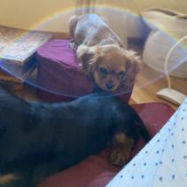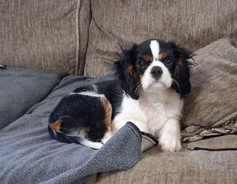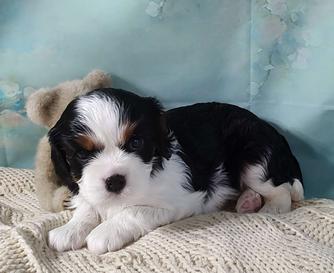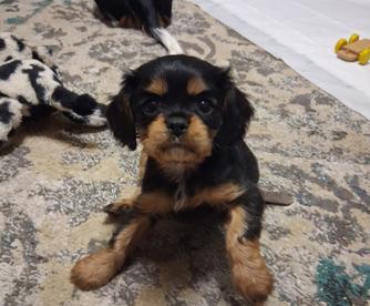 Our puppies include blenheim, ruby, tri-color, and black and tan. Colors will vary depending on the parent dogs.
