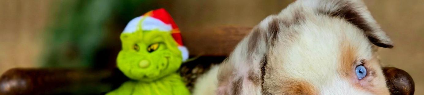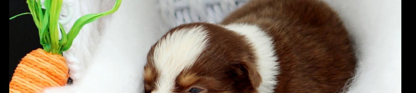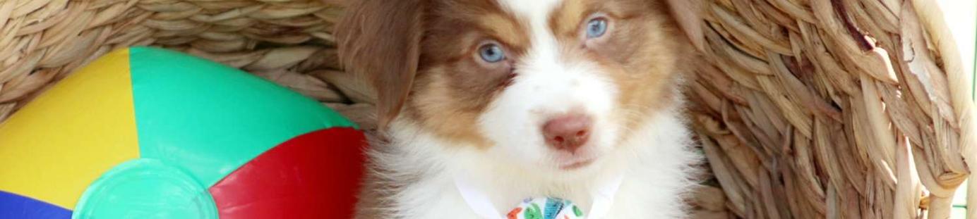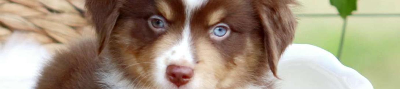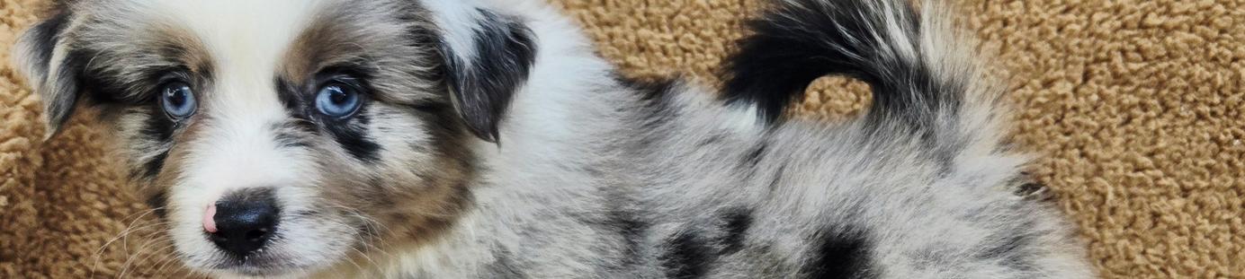 Our Miniature Australian Shepherd puppies include blue merle, red merle, red, and black. Aussiedoodle puppies include brown and white, blue merle, red merle, and black and white. Australian Shepherd puppies include black, red merle, blue merle, and red. Colors will vary depending on the parent dogs.