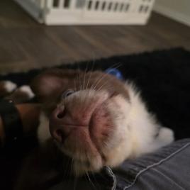 Our sweet Willow is just the best girl. She never walks past me without looking up to say hi and get a rub under the chin. My husband drove from Texas to Georgia for Willow with never a regret. She rode home in his lap and has adored him ever since. Willow has an amazing laid back temperament and her greatest pleasure is being with her person…and belly rubs! A pure blessing she is!