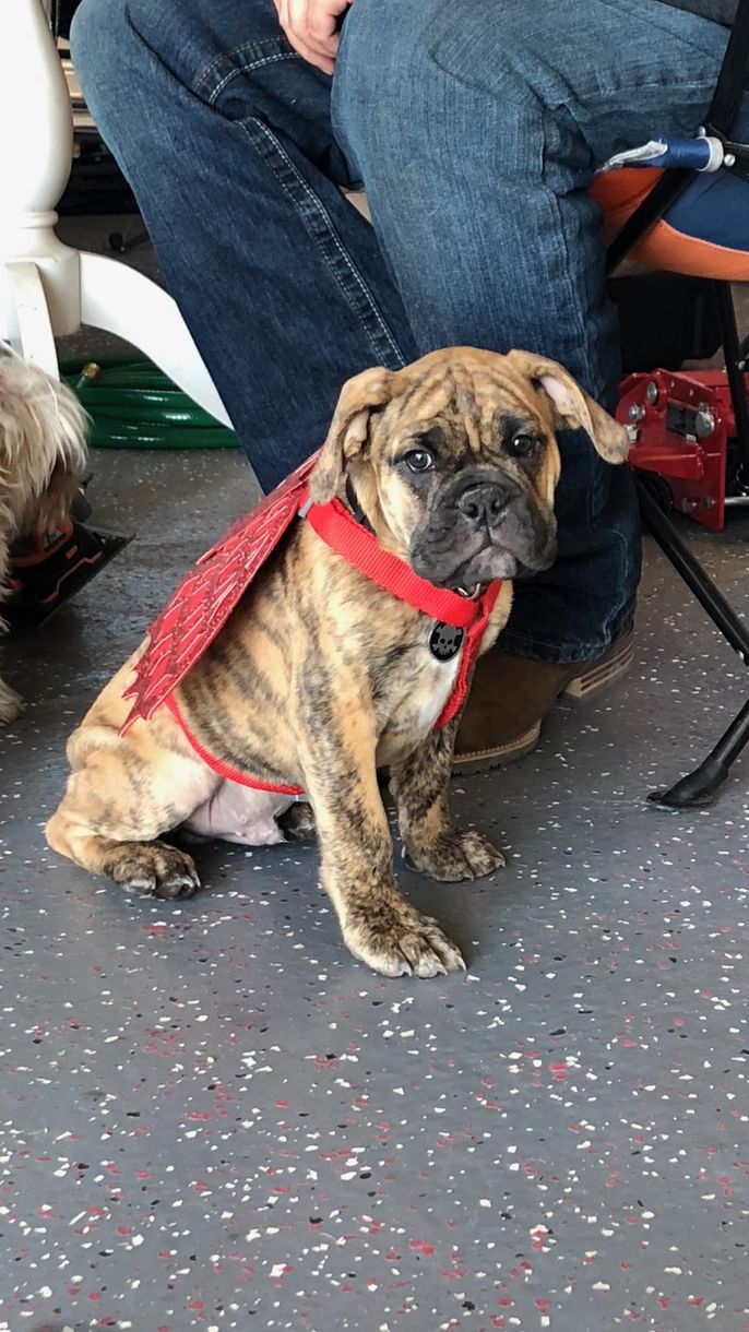 Khaos is a male Olde English Bulldogge almost 6 years old. Carefully selected as a great representative of his breed, Nicole decided to make him part of their program. Nicole has passed Good Dog’s screening process, which involved a review of their breeding practices, environment, and the mental and physical health of their dogs.