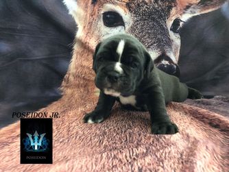 Poseidon is a male Olde English Bulldogge almost 9 years old. Carefully selected as a great representative of his breed, Nicole decided to make him part of their program. Nicole has passed Good Dog’s screening process, which involved a review of their breeding practices, environment, and the mental and physical health of their dogs.