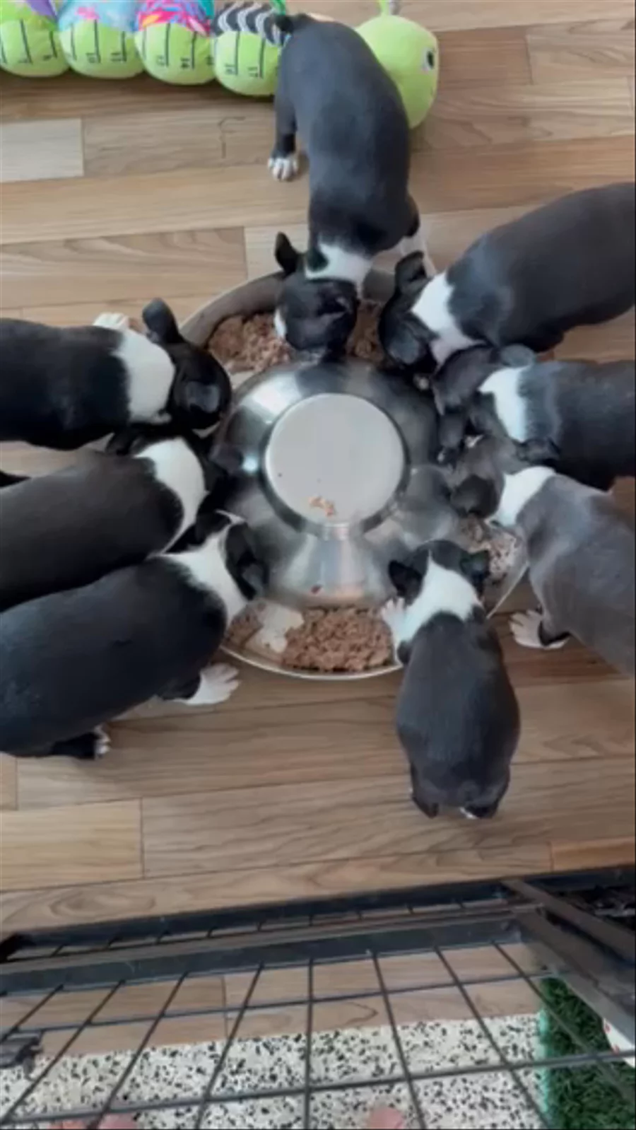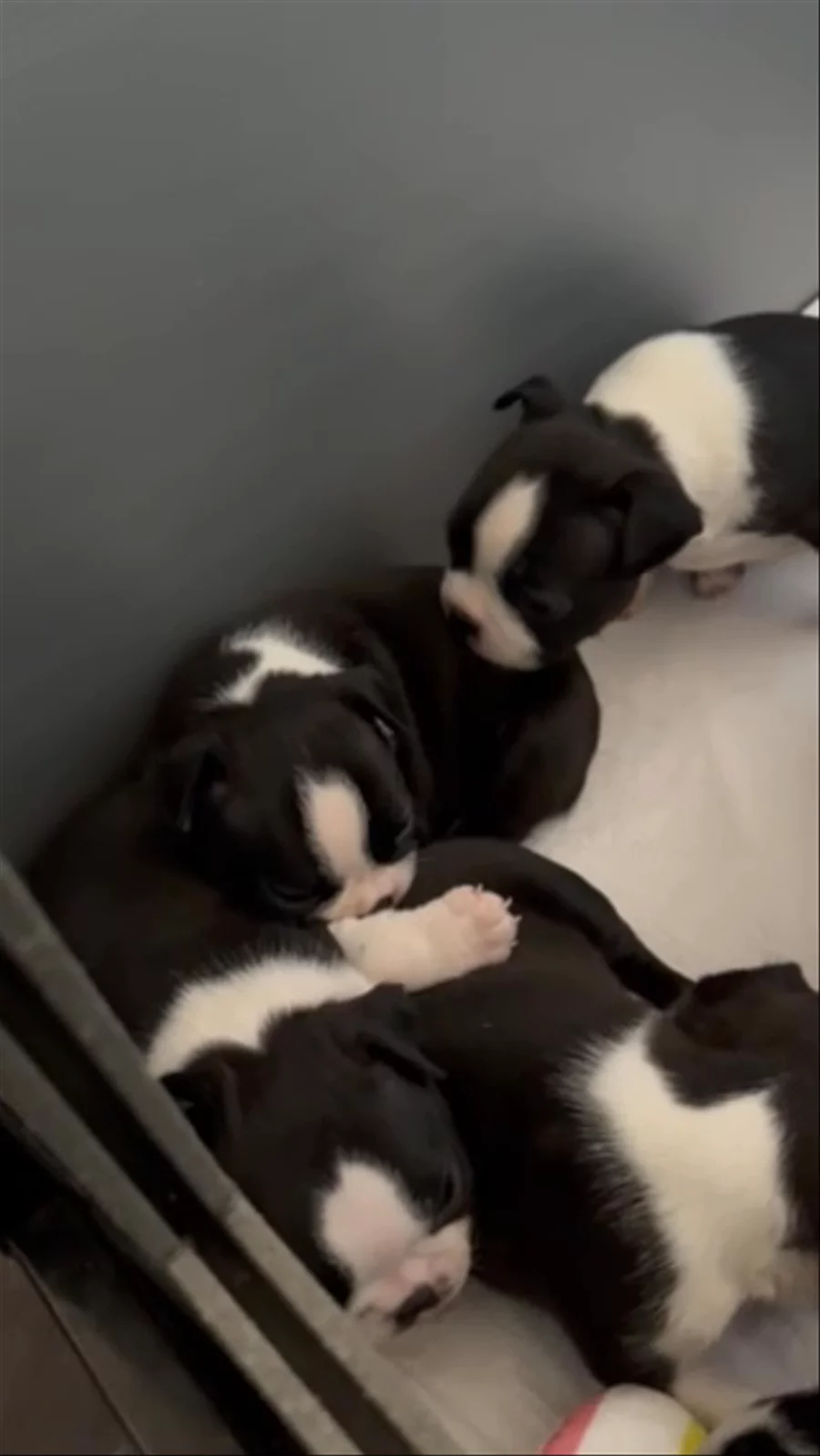 Our puppies include black brindle and white, brindle and white, and black and white. Colors will vary depending on the parent dogs.