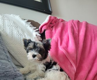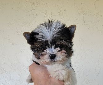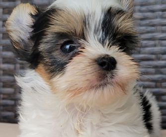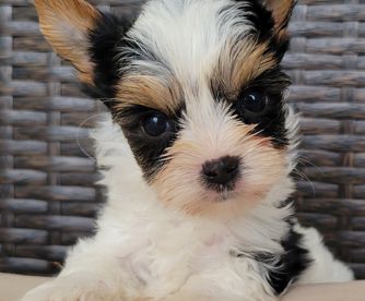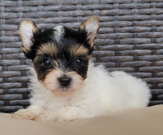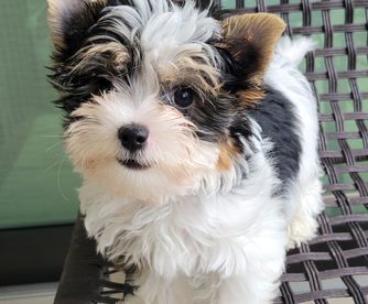 Our Biewer Terrier puppies include blue tan and white and black tan and white. Colors will vary depending on the parent dogs.