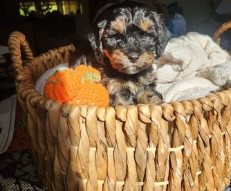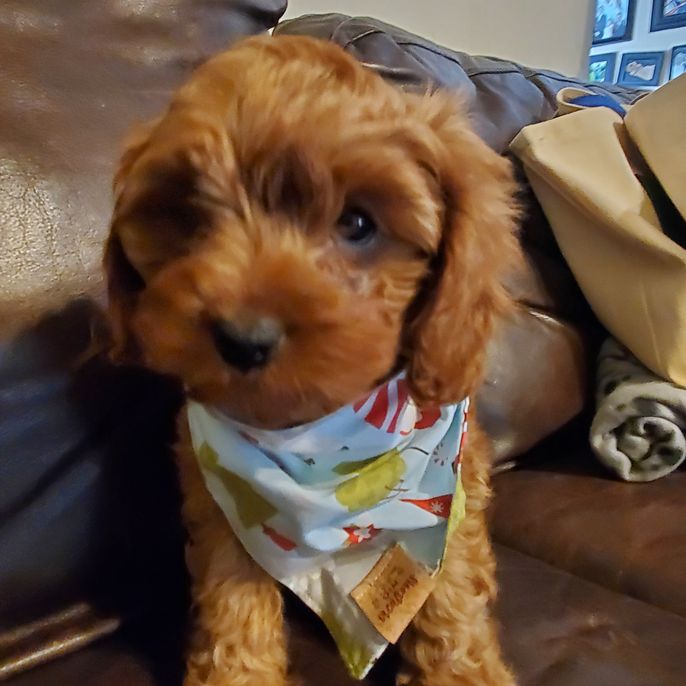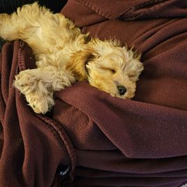 With all the puppy breeder sites I was so fortunate to run across Brittany's Gold Country Doodle website!! The minute I saw her pups I knew that they are raised with the love and care I was looking for! I did not have to look very hard as I knew what I was looking for and found Coco right away!! I cannot say enough about how sweet, smart, beautiful and just wonderful our new little Cavapoo Coco is. We just had to put our little 17 year old chihuahua down less than a month ago. Our hearts were broken and still miss her so much, but this precious little pup has filled the hole that losing Jojo left!! Please if you are considering purchasing a perfect little companion and a wonderful breeder experience you have to choose Brittneys "Gold County Doodles"! I will guarantee you will not be sorry!!