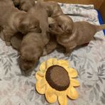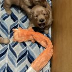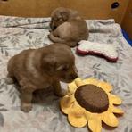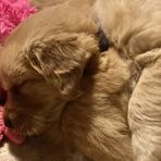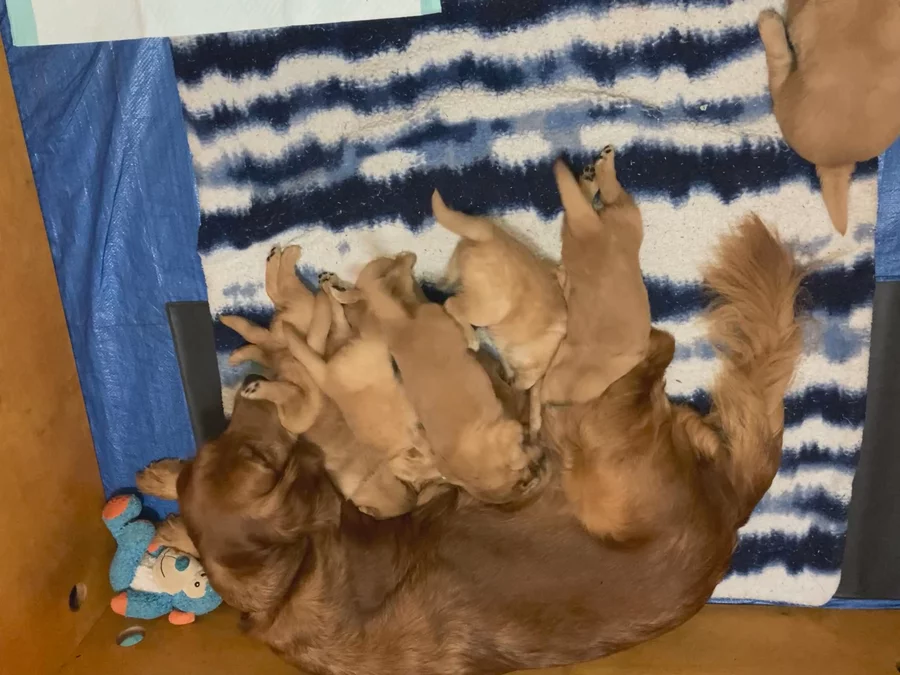 This is Cosmo and Pebbles’ third litter. They have made incredible puppies. Their puppies have become therapy dogs, service dogs, and wonderful family companion dogs. Their offspring are smart, sweet, loving and easy to train. They are beautiful dogs with easy care coats. Pebbles is a wonderful mother and Cosmo is a “paws on” father. He shows them where they should go potty outside, introduces them to ball play and tug of war. As parents they watch over the puppies playtimes making sure they don’t get too rough with each other. The puppies are raised inside our home, eat homemade specially prepared food as they are weaned. They are all socialized and handled daily. We know our puppies and look forward to helping you pick your just right companion.
