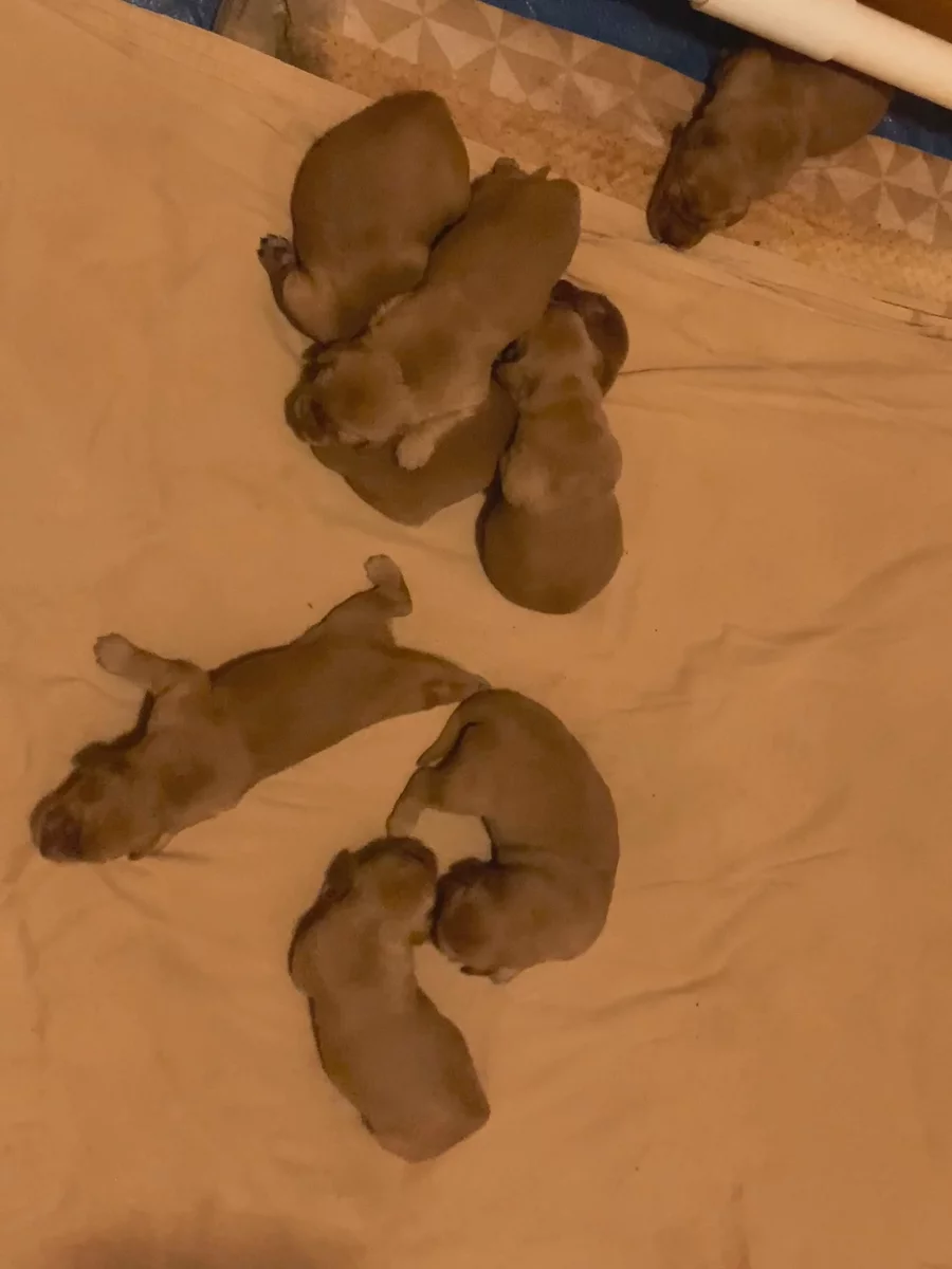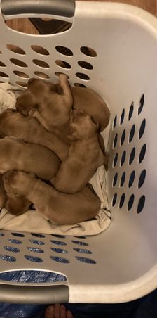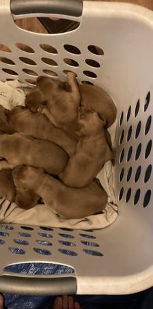 One week old today! Puppies can smell and sense when Pebbles enters their pen and are pretty good at finding her. That will do pup, that will do.