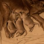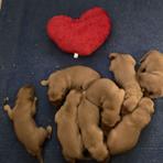 Pebbles and Cosmo’s puppies are growing strong and healthy under Pebbles’ nurturing care.