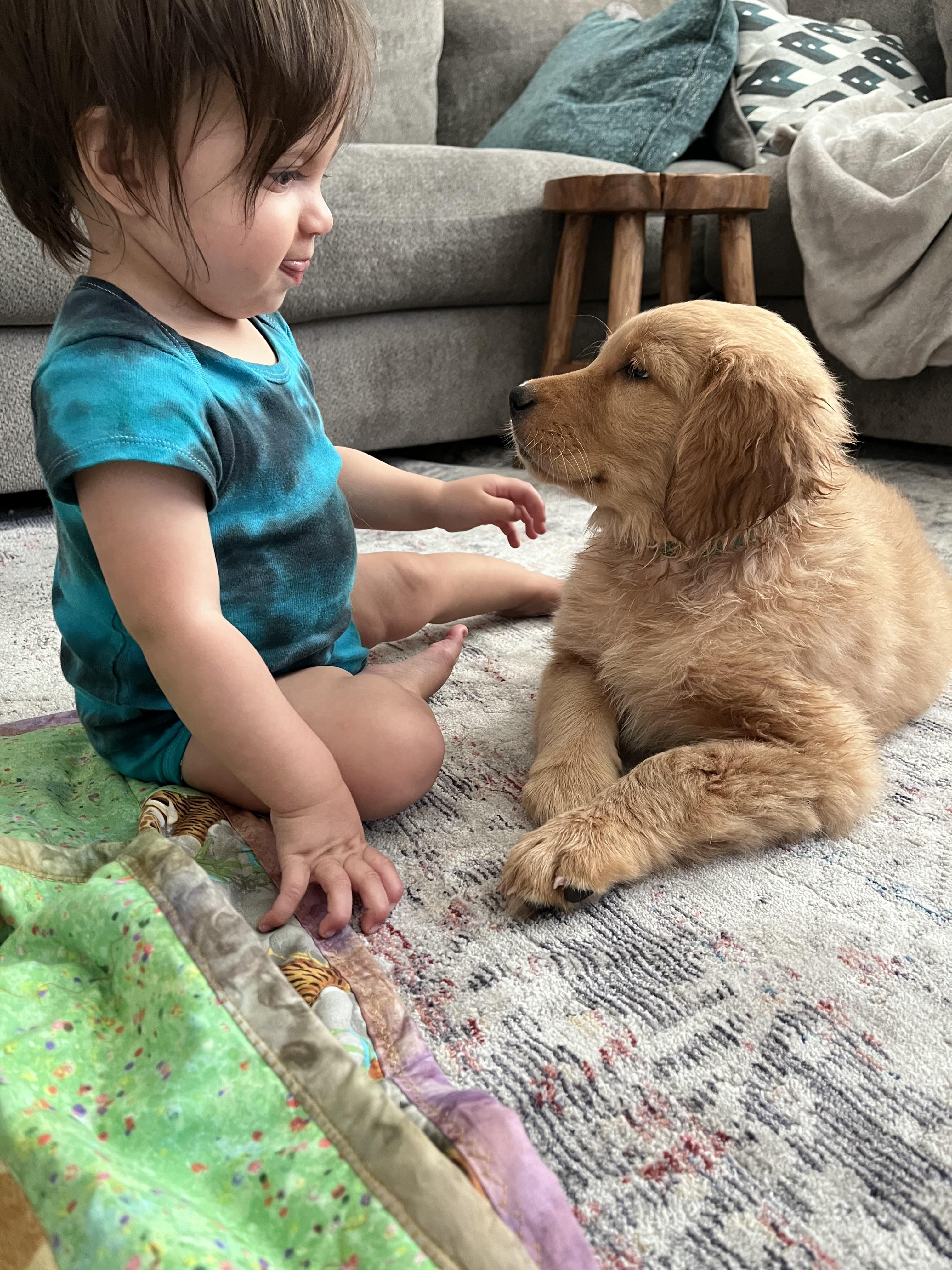 The puppies’ teeth are coming in! Puppy breath has arrived!!! They are becoming very aware of me- looking up, wagging tails and of course, kisses😍