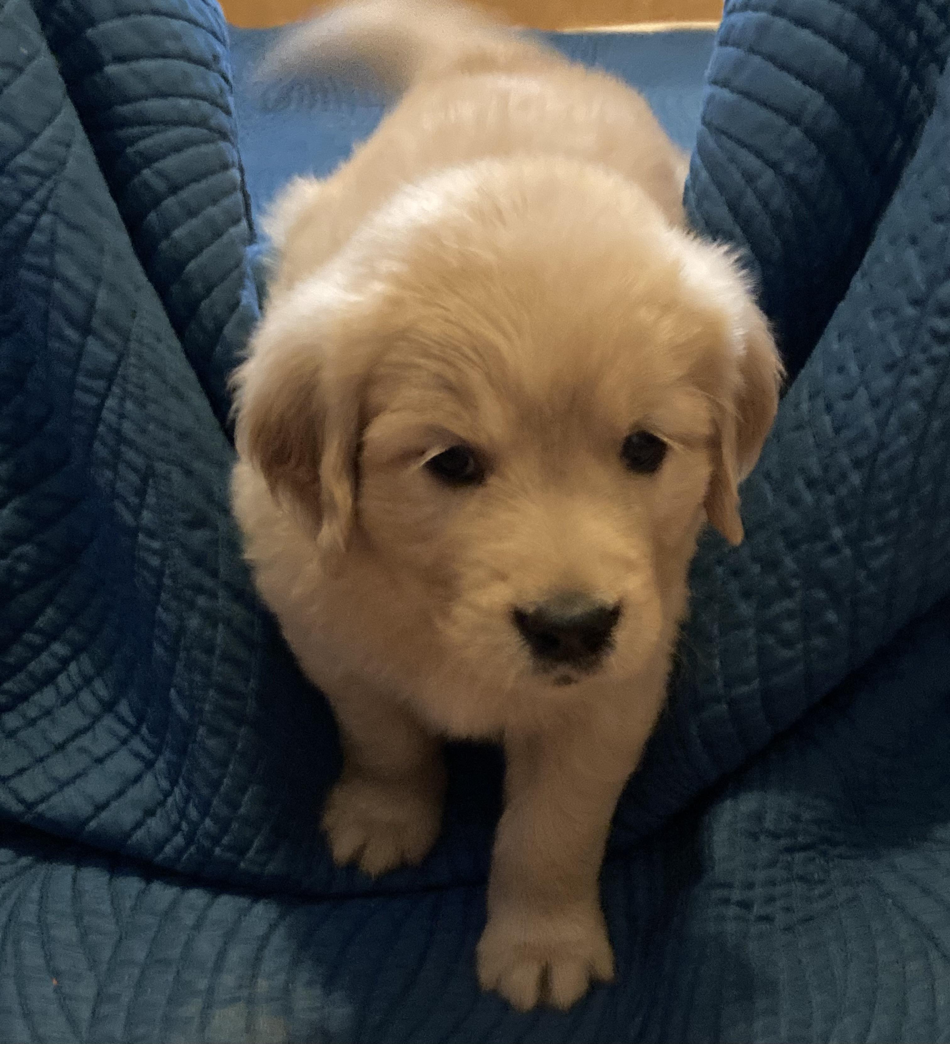 I waited awhile after losing my 12 year old Golden retriever before I started looking for another puppy. I researched quite a few breeders before finding Paige of Gold Country Golden Retreivers. How lucky I was to find her because she is so dedicated to raising such healthy beautiful puppies in a kind and nurturing manner. She sent updates of all of the puppies during their first weeks and provided great information and insight on each puppy when it was time for me to select my Lucy. She continues to give great advice and assistance when I have a question. Lucy is a smart, healthy, curious, and healthy puppy who brings me great joy.