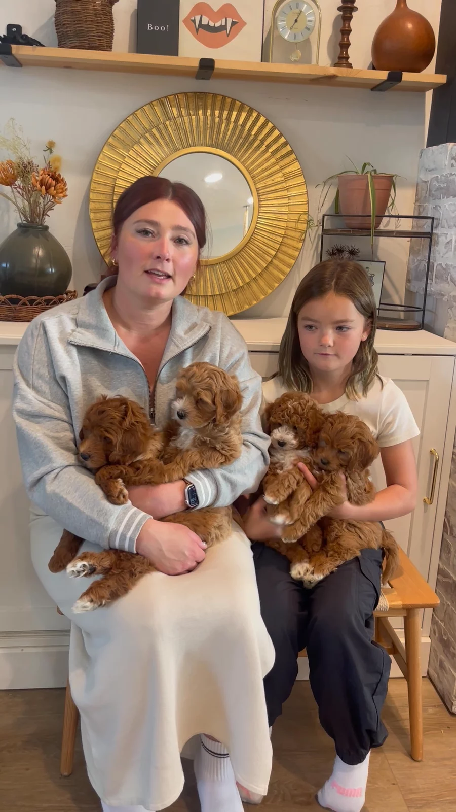 Back in 2020 I was diagnosed with stage 3c rectal cancer , Once I started treatment I wasn’t able to work anymore. I was the sole provider for our finances, It wasn't long before our money was gone. We had to sell our house or lose it. My wife and I talked about what to do to get by if something happened to me. While I was receiving treatment we got a mini labradoodle , we love Kimber she is a great dog but we noticed she shed more then we liked. We still have her and she is my girl. But we found out about F1b mini golden doodles that don't shed. So we invested in 2 of them 3800 for our stud and 2500 for our female. It seemed crazy to me at the time because you have to wait approximately 2 years before you can breed them. So 2 years living with these dogs showed me the lovers they are.