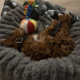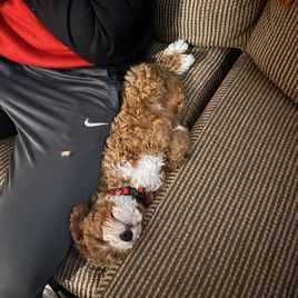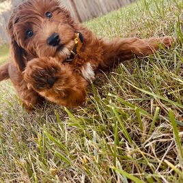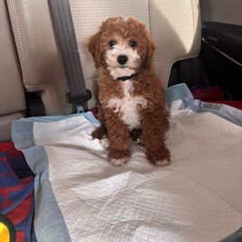 I feel very fortunate to have discovered Andy and Nichole from Gold Country mini doodles. I saw their puppies on the Good Dog website. Very good pictures and descriptions of each puppy. Andy and Nichole were very responsive and helpful with my inquires. They were very accommodating regarding pickup. Rusty is a thriving puppy learning and experiencing all sorts of new things. A big thank you to Andy and Nichole!