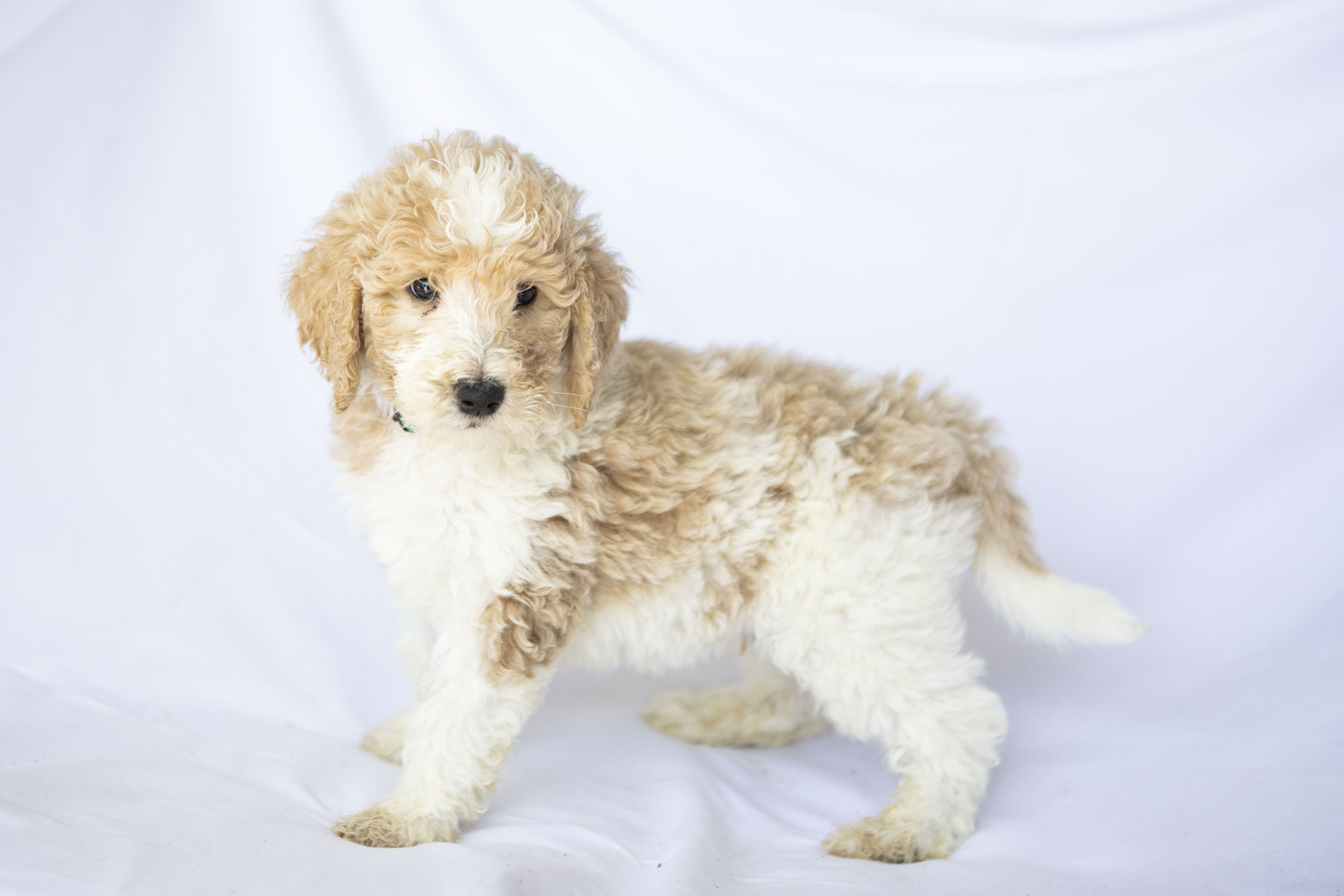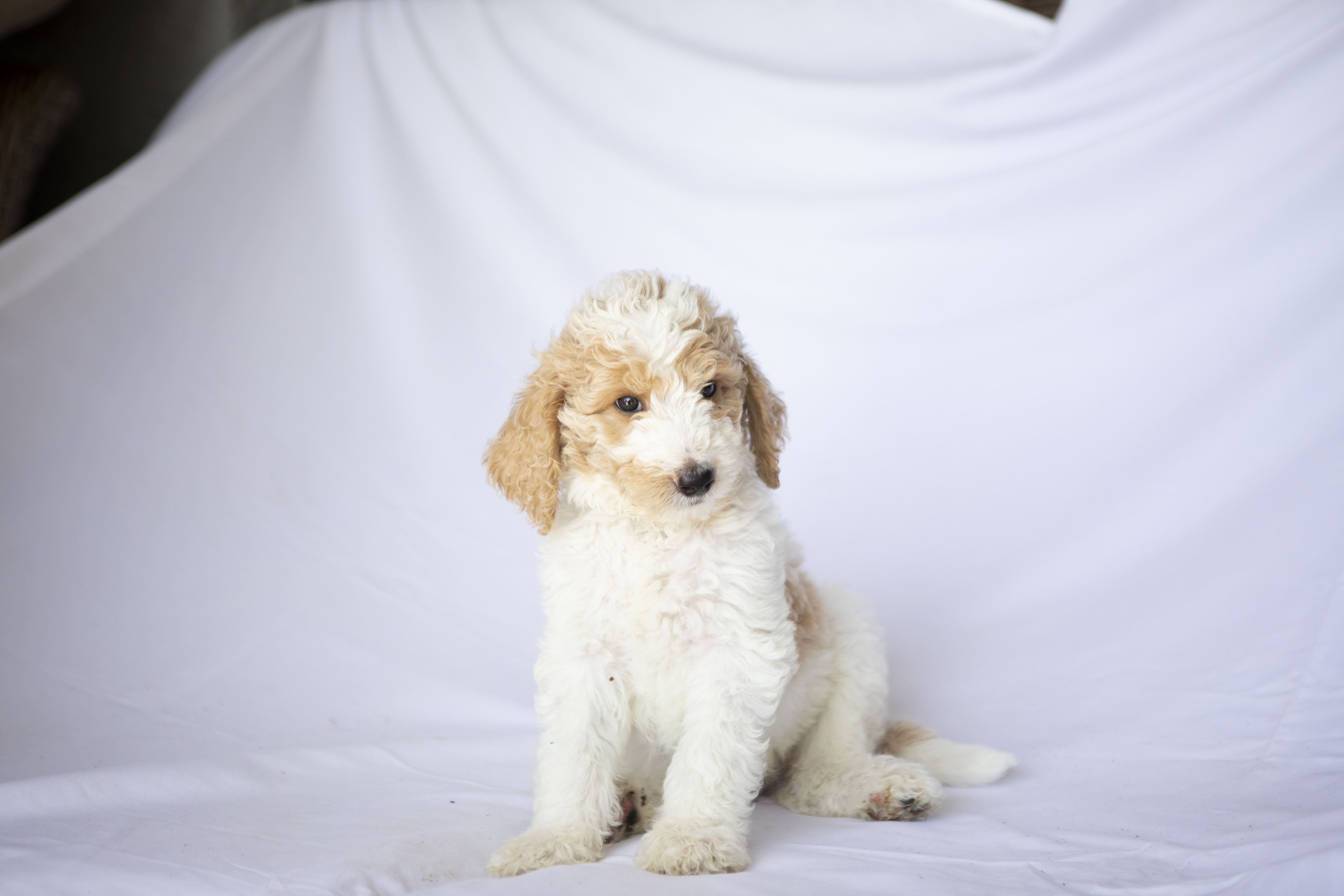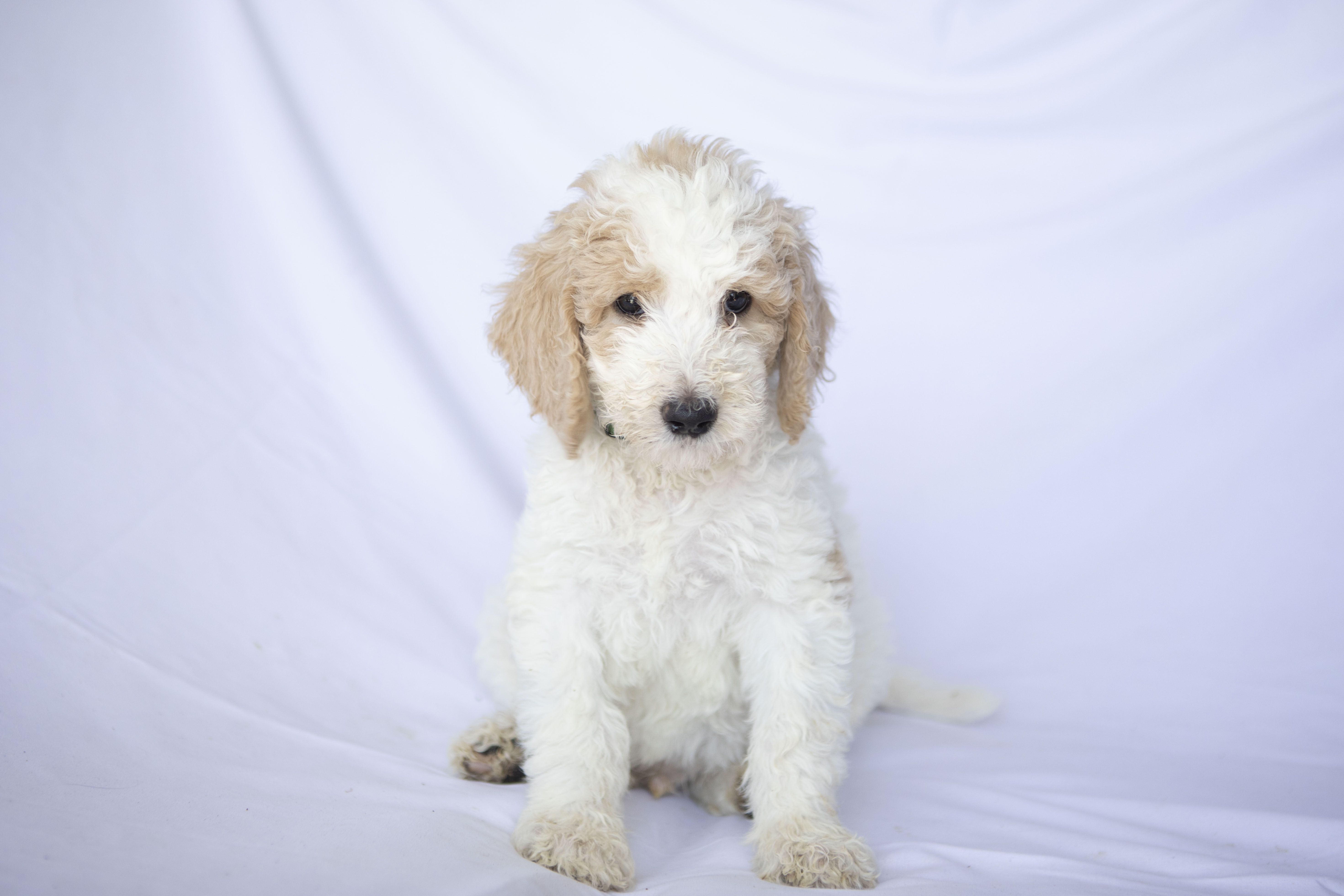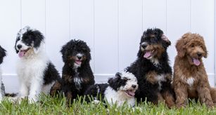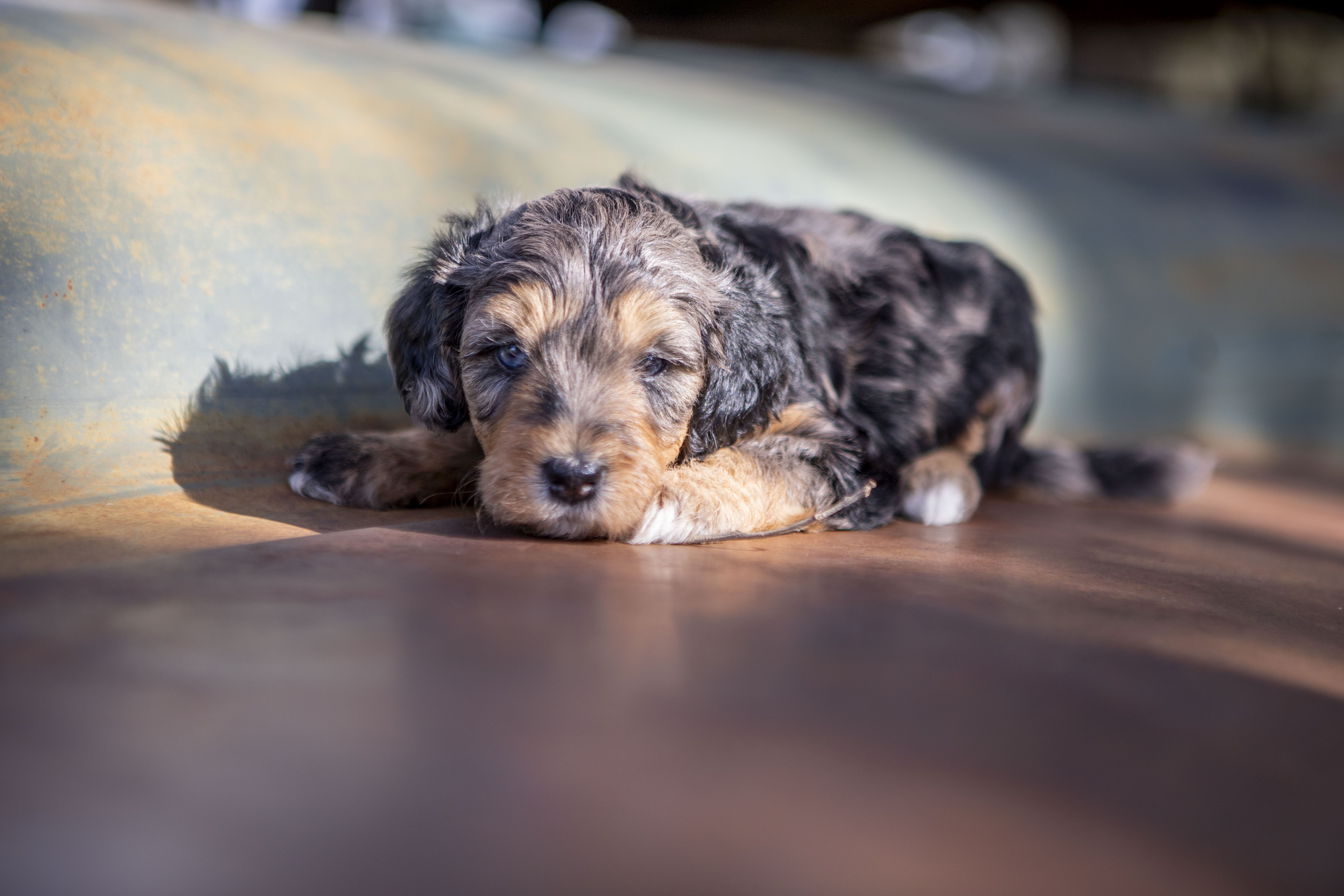 Our Goldendoodle puppies include cream, apricot, and parti. Bernedoodle puppies include red, black and white, tri-color, blue merle, and merle. Colors will vary depending on the parent dogs.