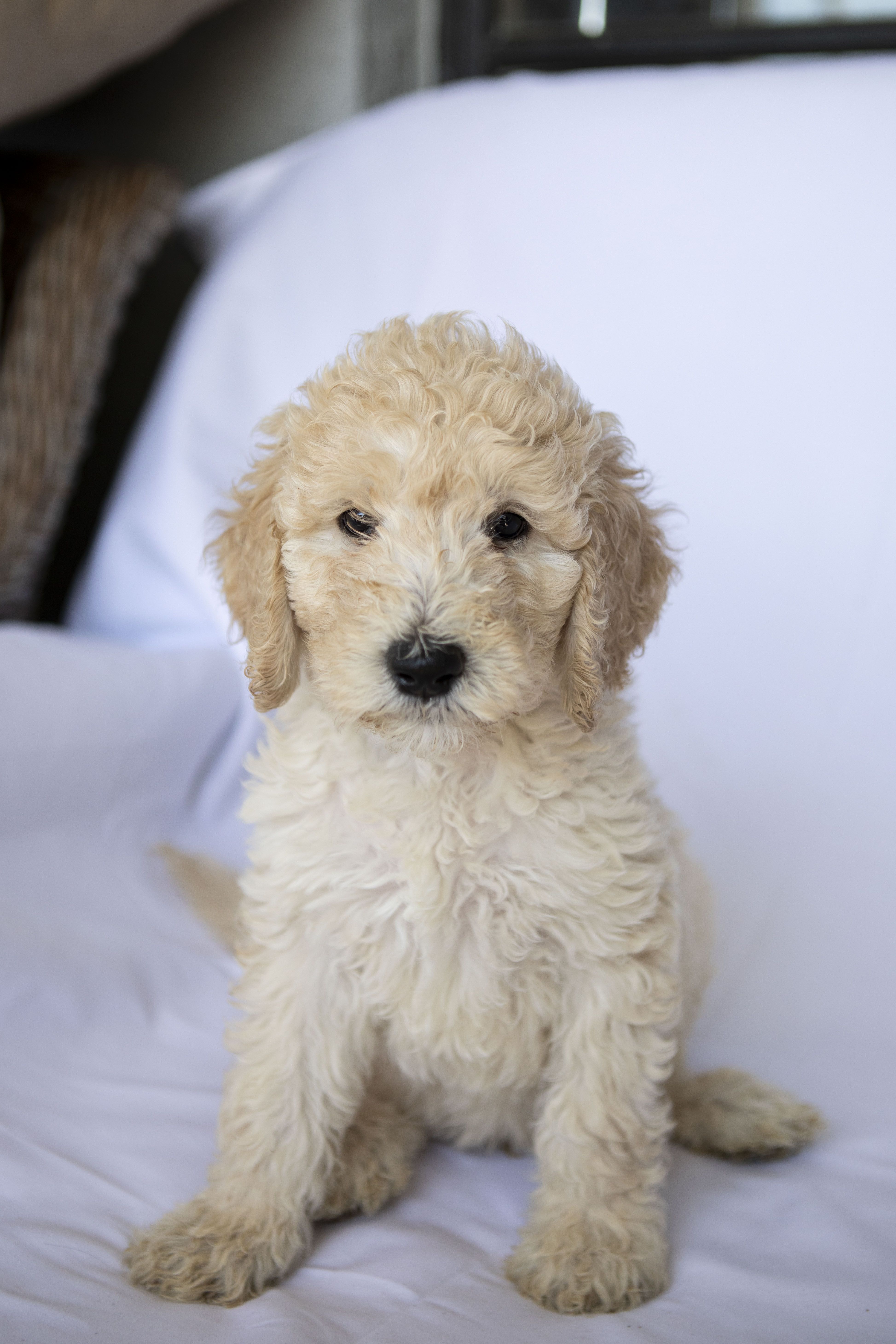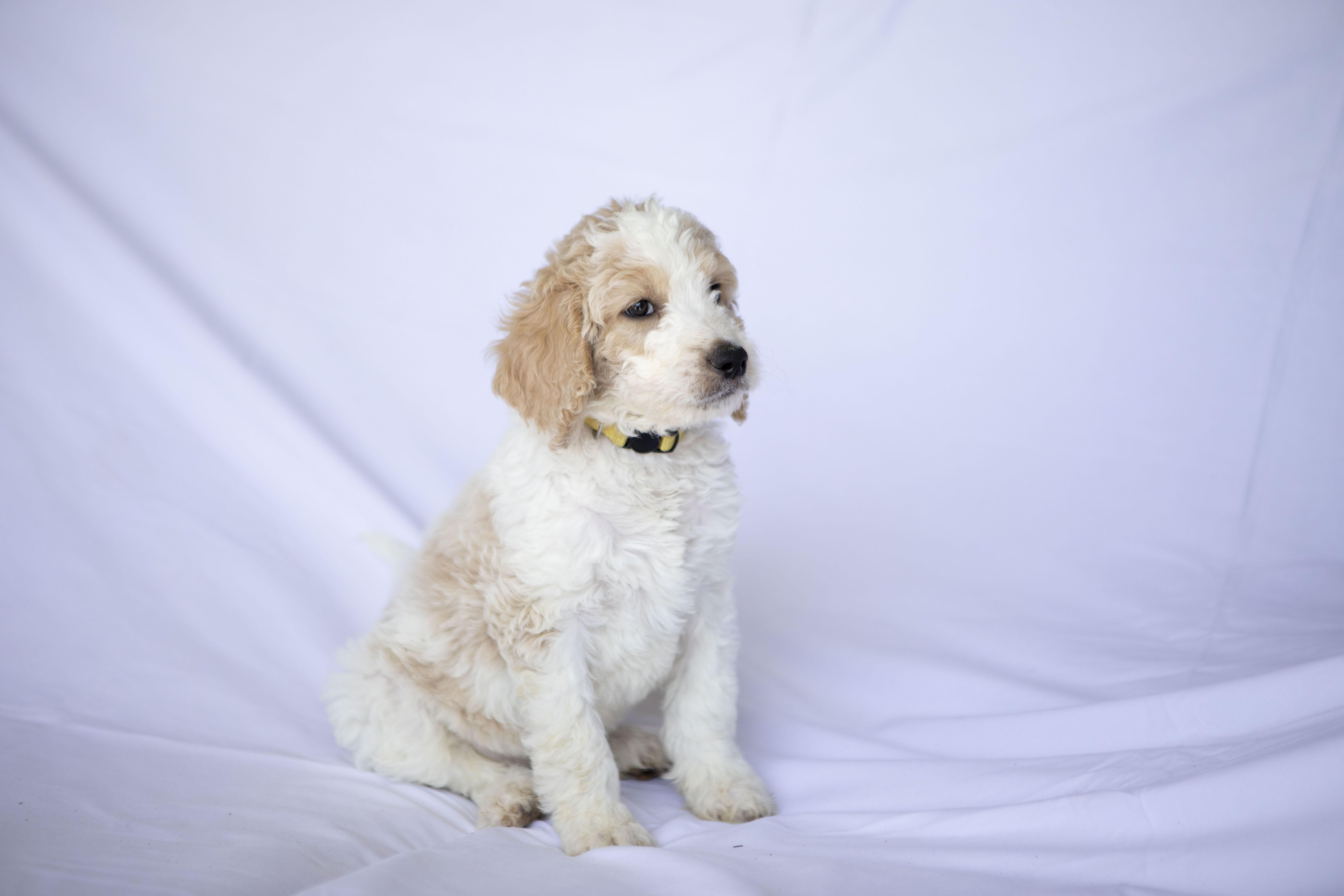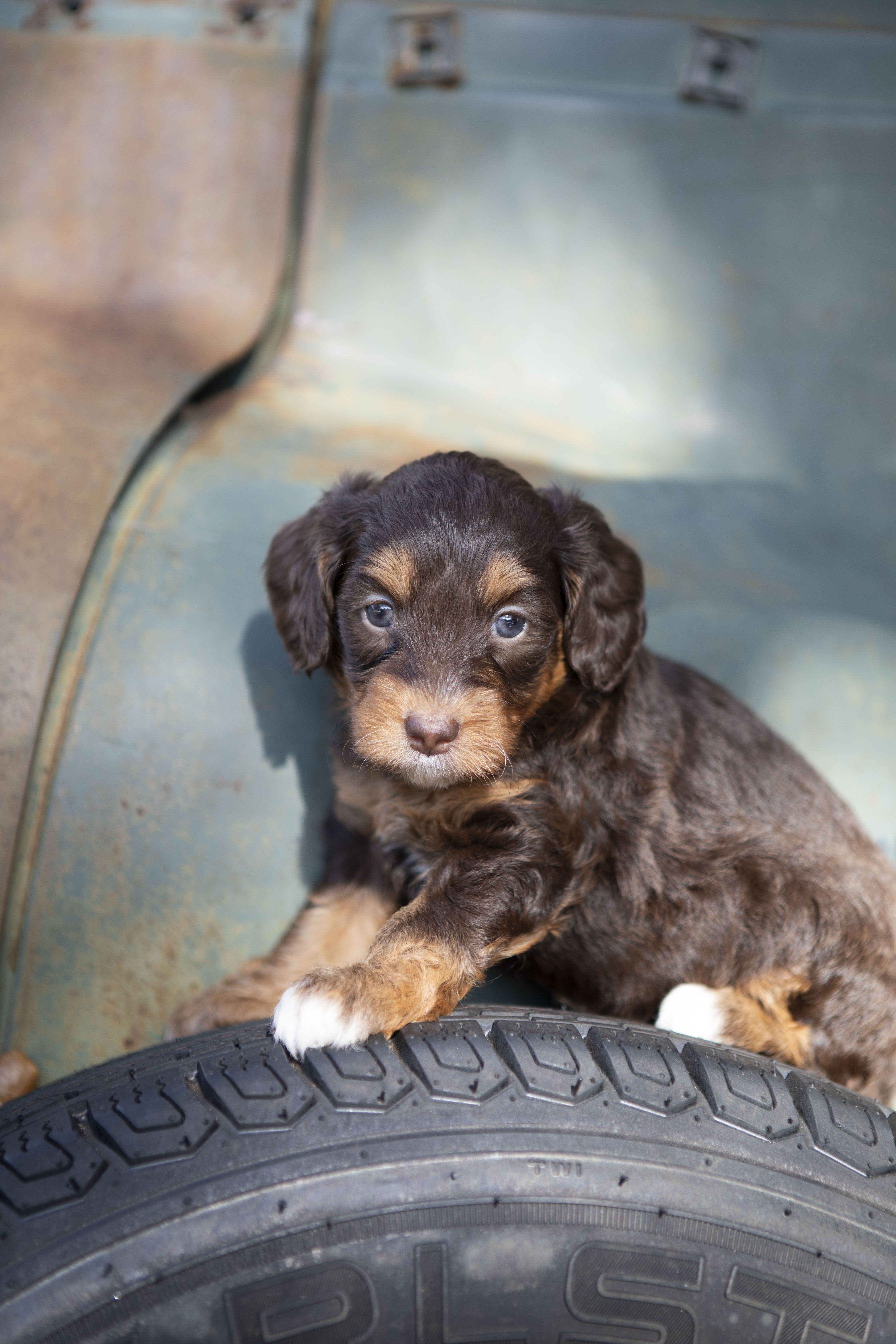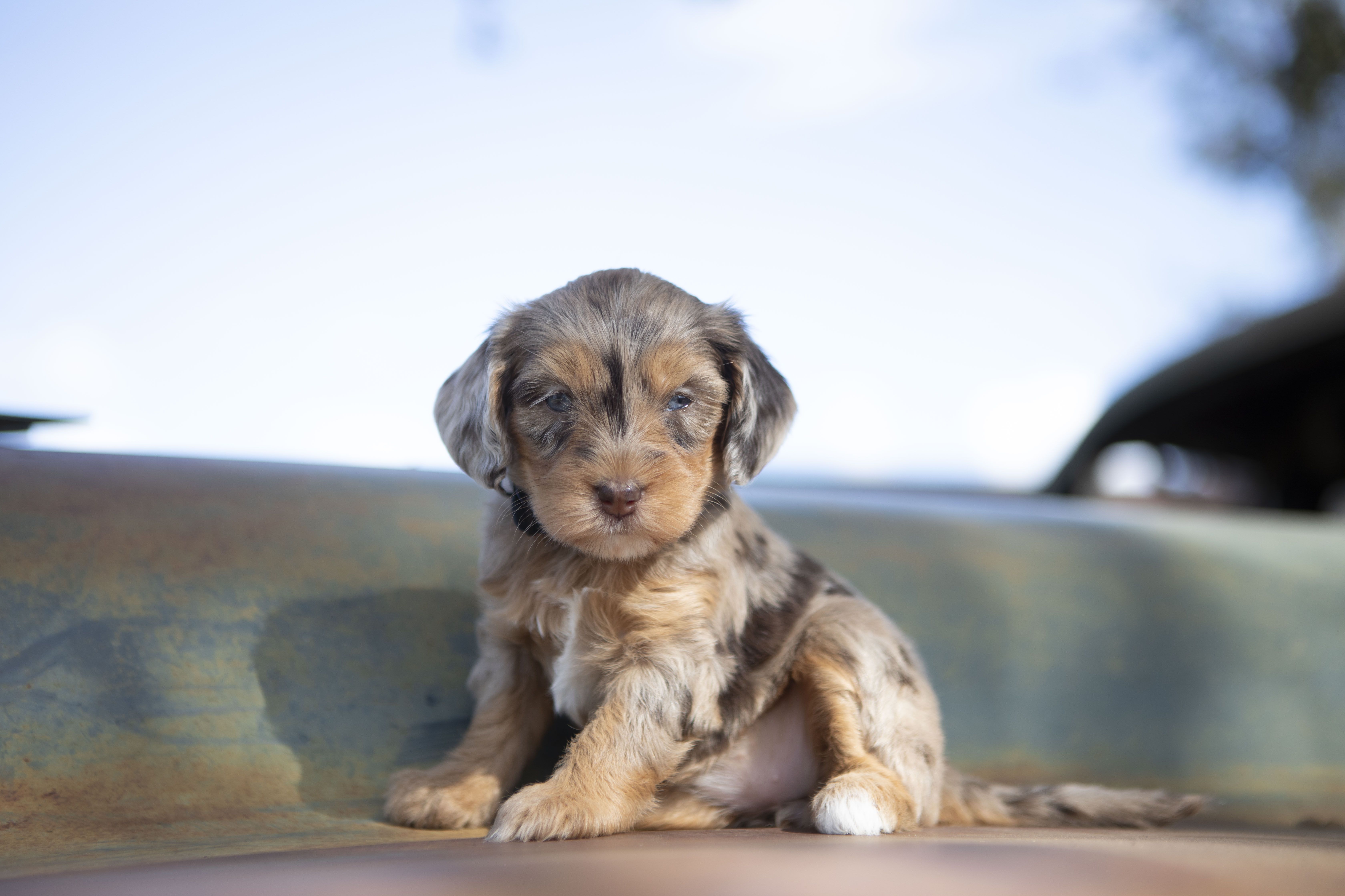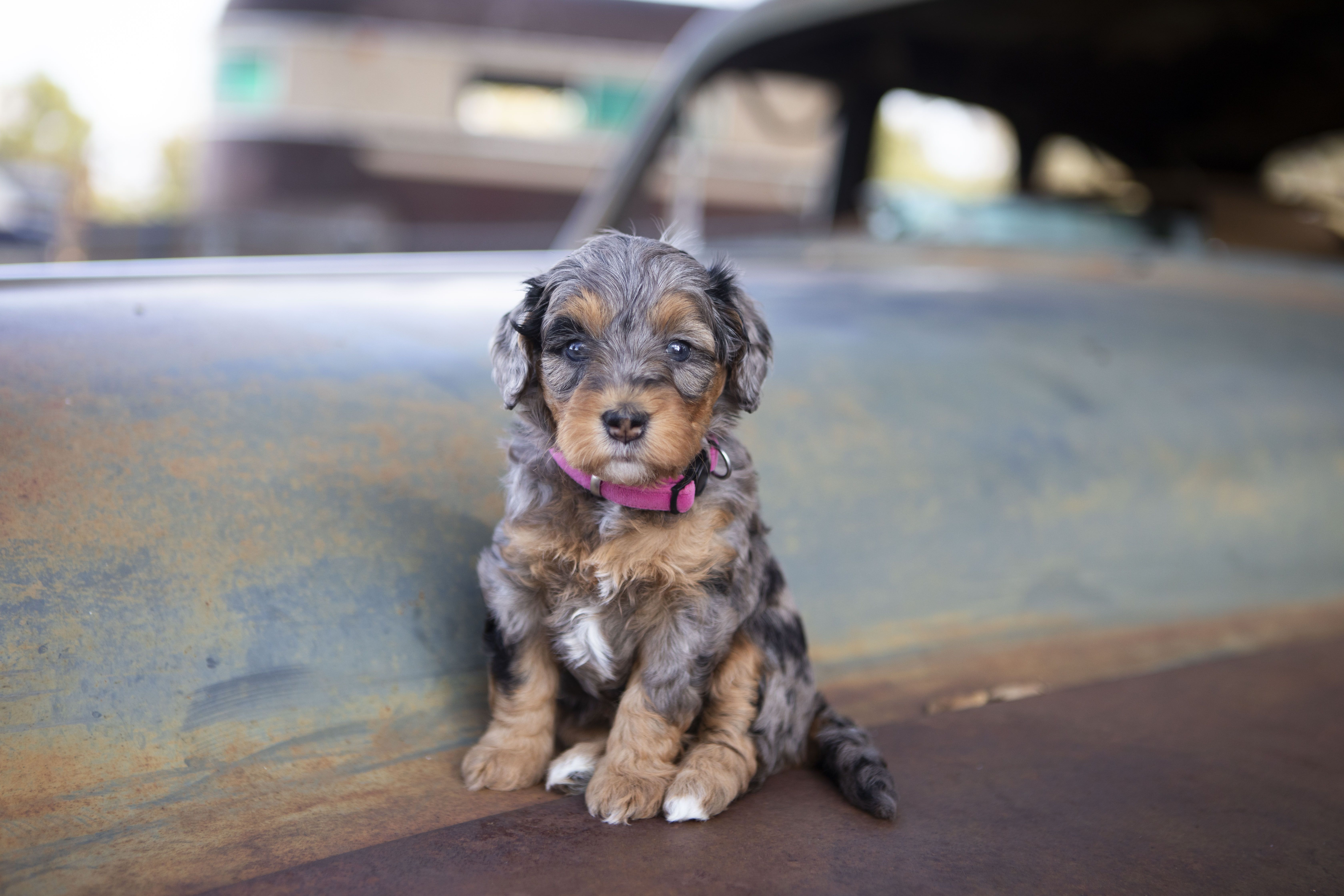 Our Goldendoodle puppies include cream, apricot, and parti. Bernedoodle puppies include red, black and white, tri-color, blue merle, and merle. Colors will vary depending on the parent dogs.