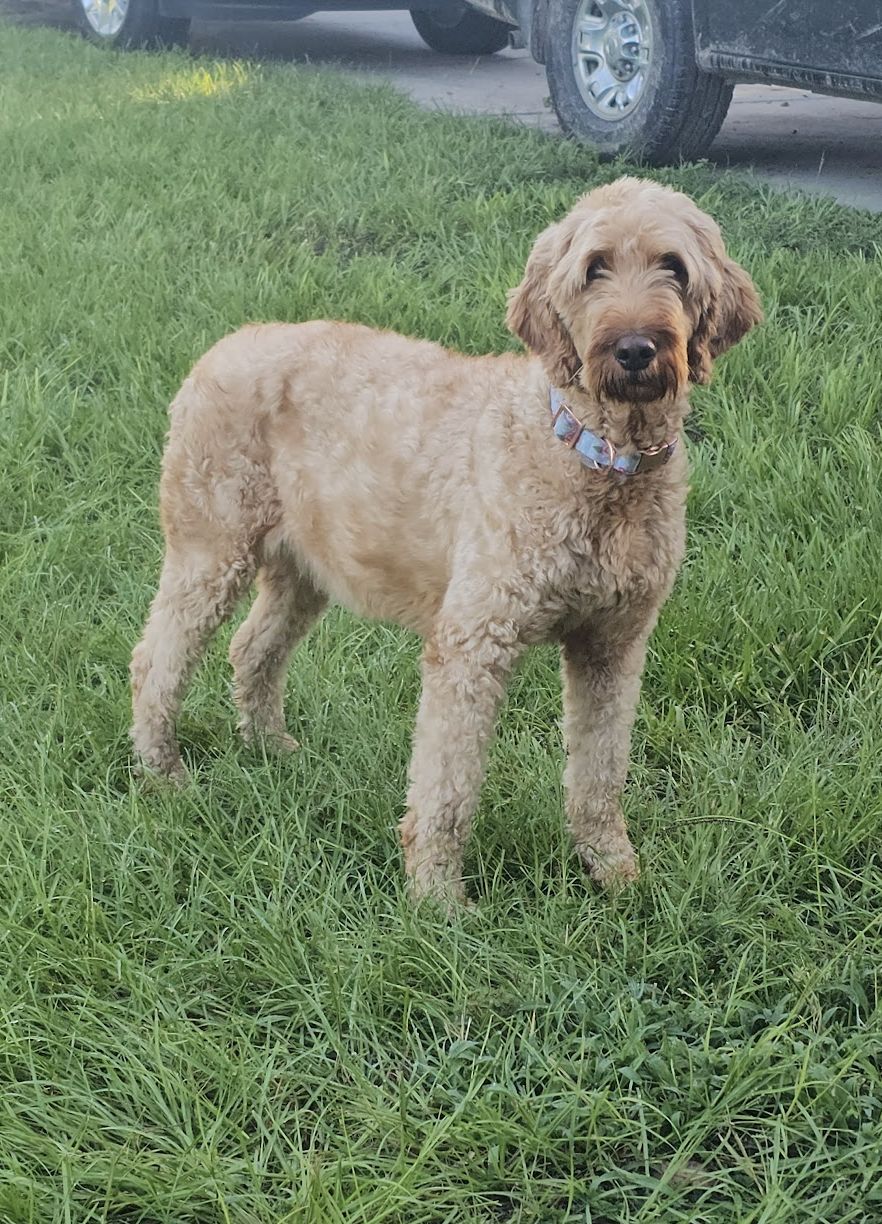 Goldie is a gentle and kind Goldendoodle with a heart full of love. She can be a little shy at first, but once she gets to know you, she blossoms into a sweet, affectionate companion. Goldie has a calm and loving nature, always eager to give and receive gentle attention.