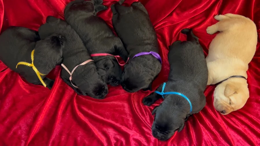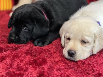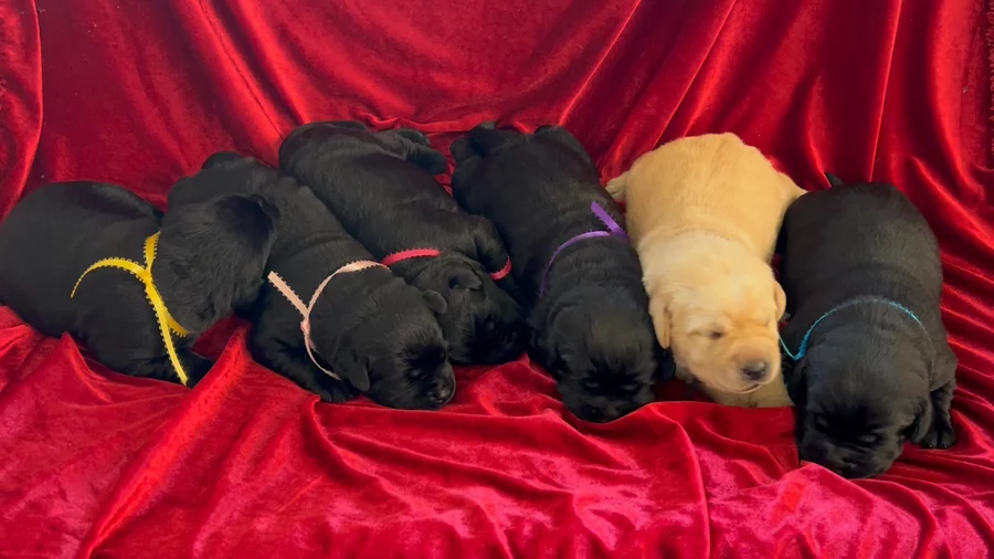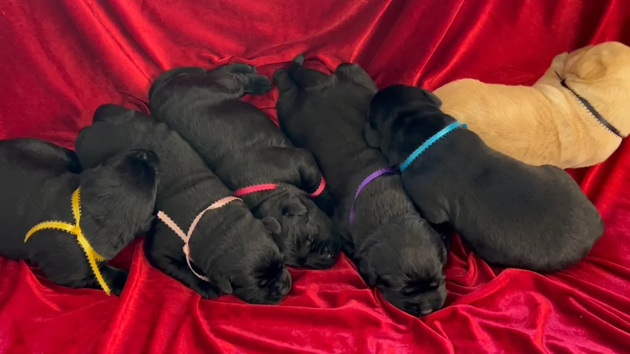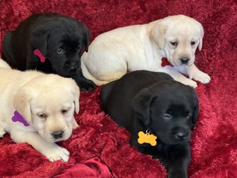 Our puppies include black, chocolate, and yellow. Colors will vary depending on the parent dogs.