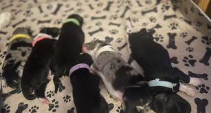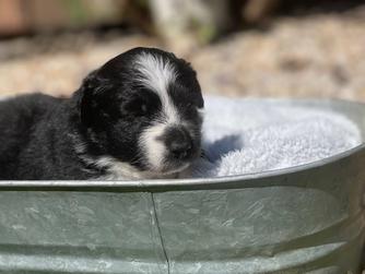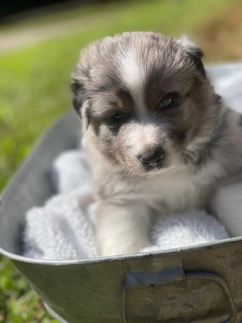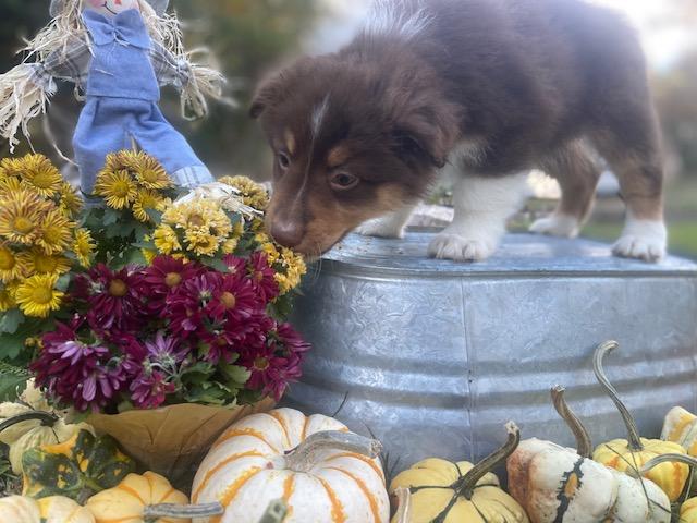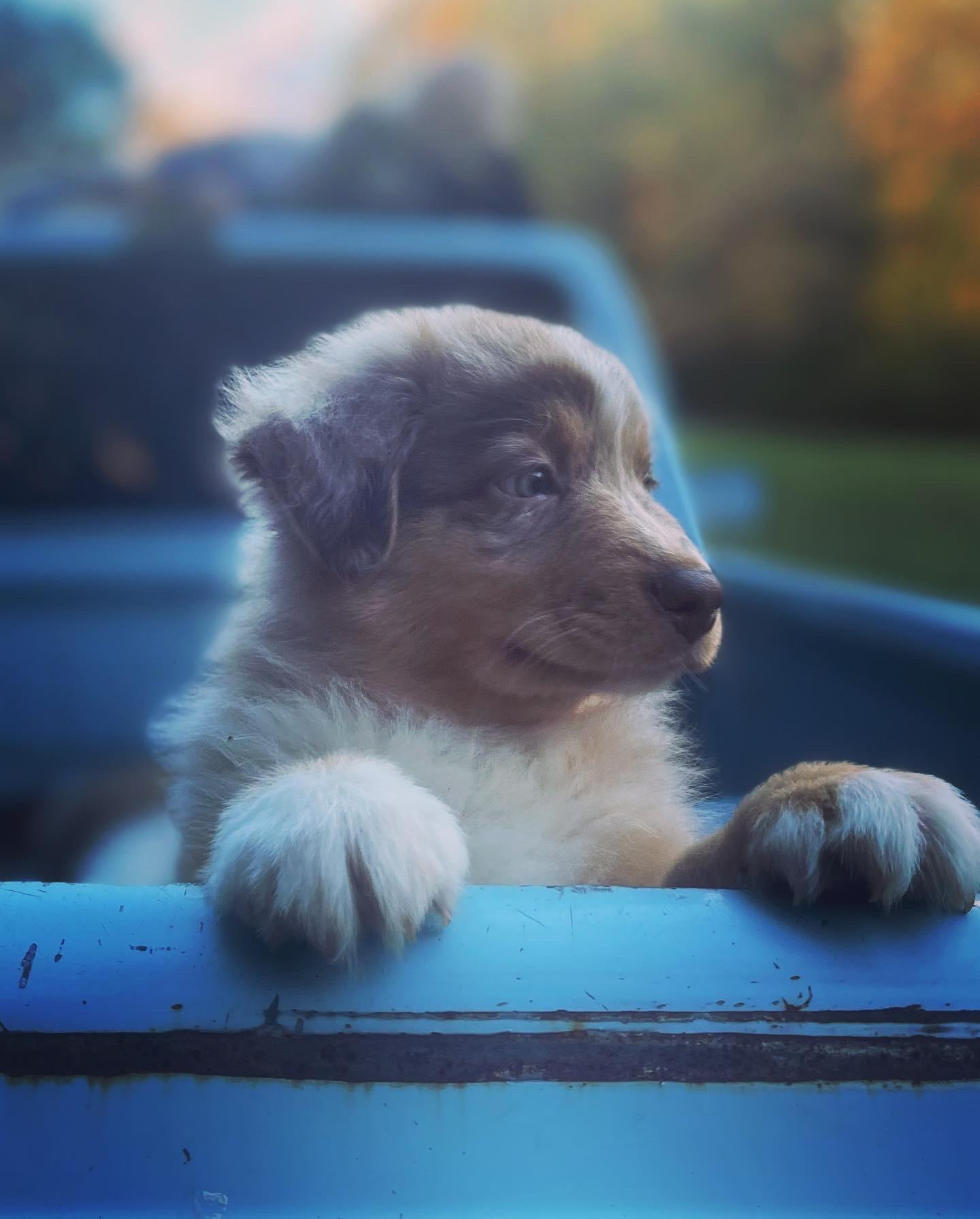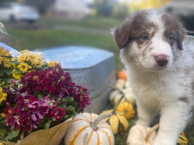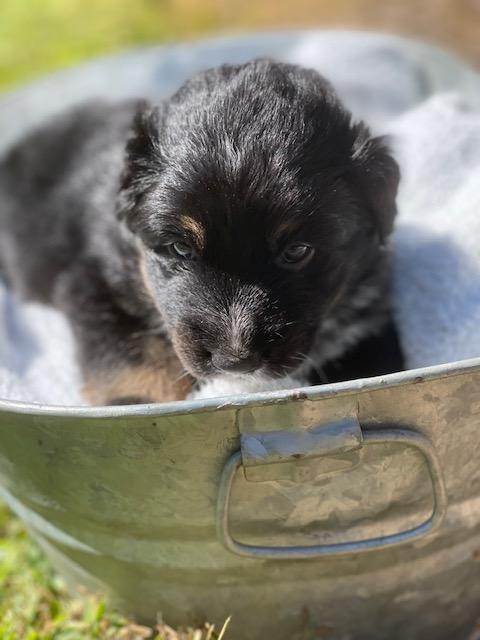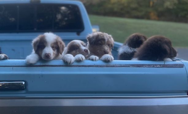 Our puppies include black, blue merle, and red. Colors will vary depending on the parent dogs.